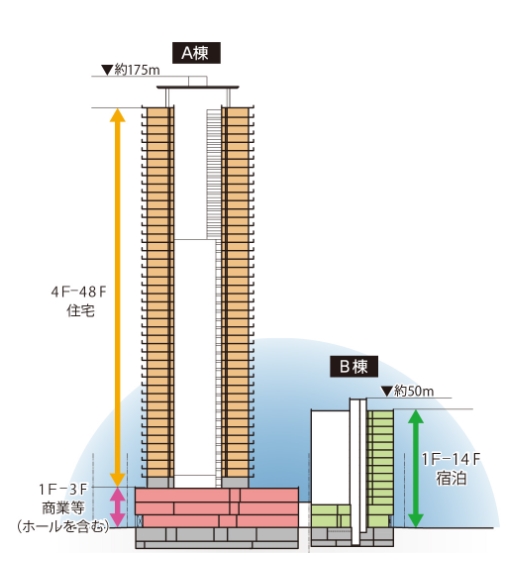 타워맨션이 지어지는 구획에는 오피스빌딩, 숙박시설, 타워형 주차장이 들어설 예정입니다.