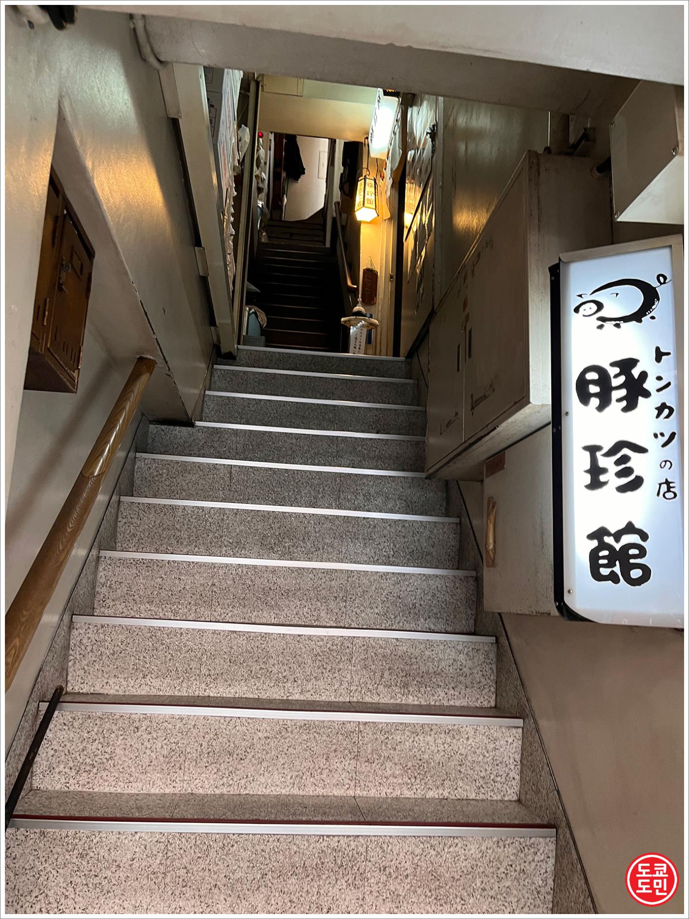 2층으로 올라가는 계단앞에 있는 "돈친칸(豚珍館)" 메뉴판입니다.