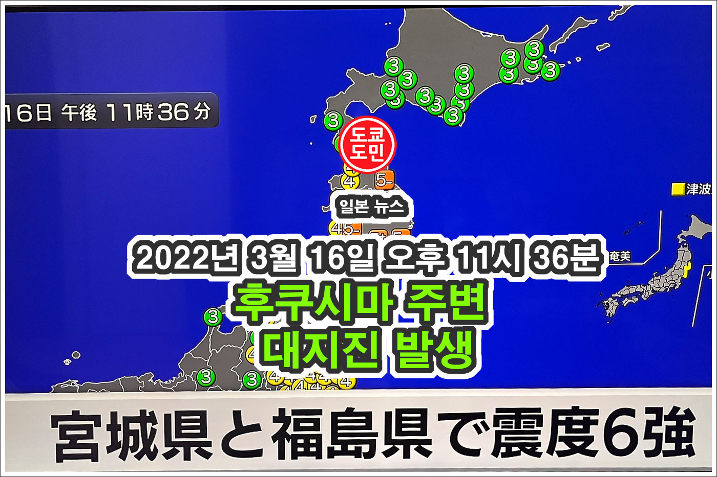 2022년 3월 16일 오후 11시 36분경에 일본 후쿠시마 주변에서 대지진이 발생했습니다.