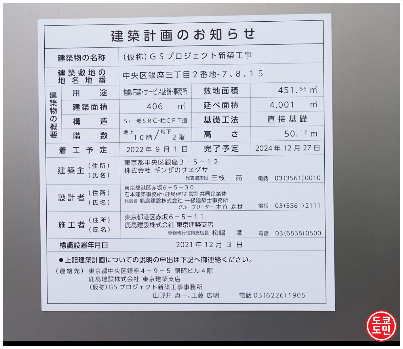 SAYEGUSA빌딩은 22년 9월부터 재건축에 들어가 2024년 12월 27일에 완공예정입니다.