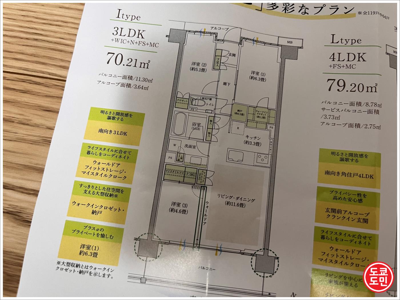 어느 맨션을 보러가나 브랜드가 달라도 평면도는 거의 똑같아요.