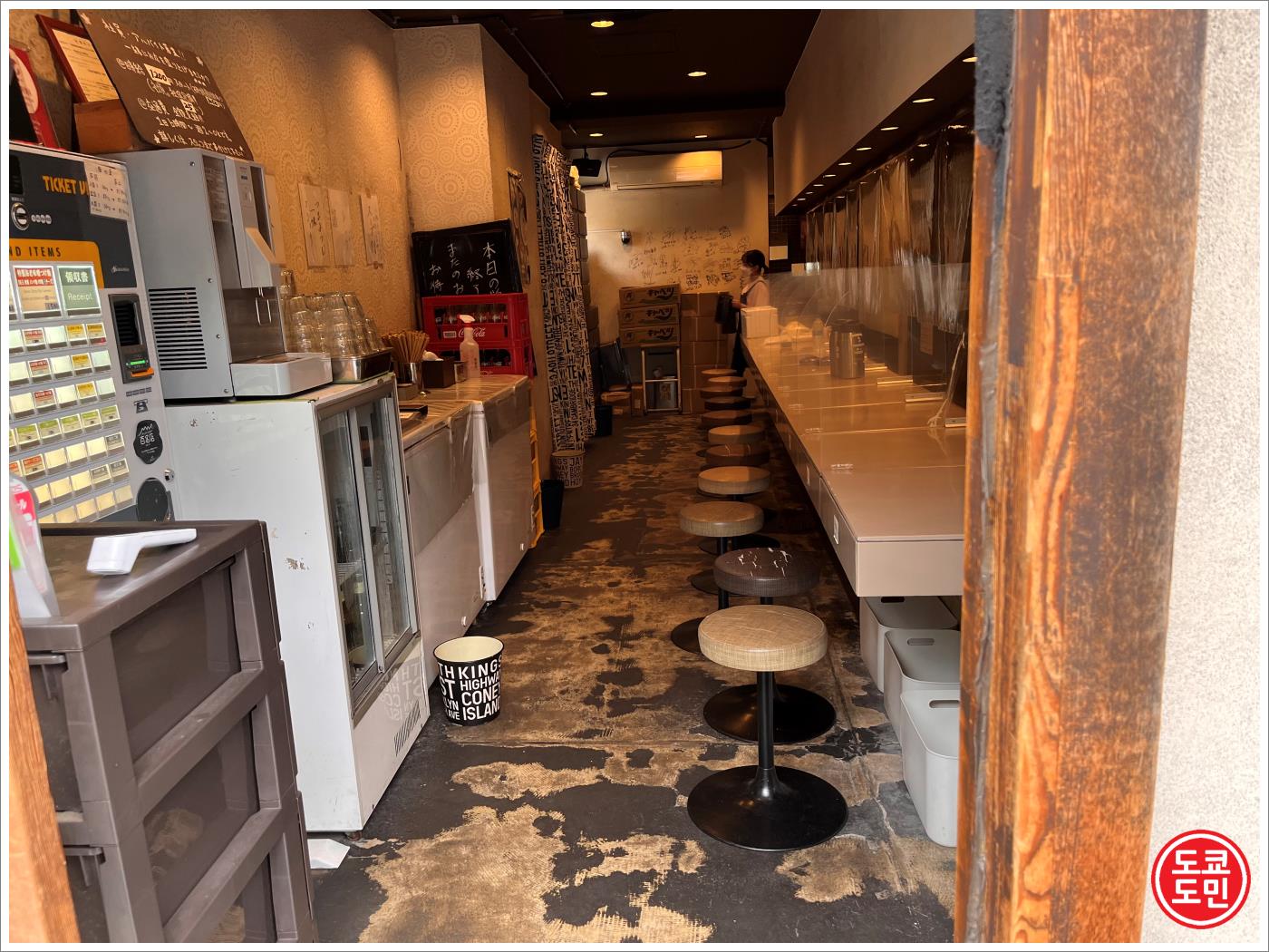 왼쪽에 식권발매기가 있고, 좌석은 카운터석밖에 없습니다.
