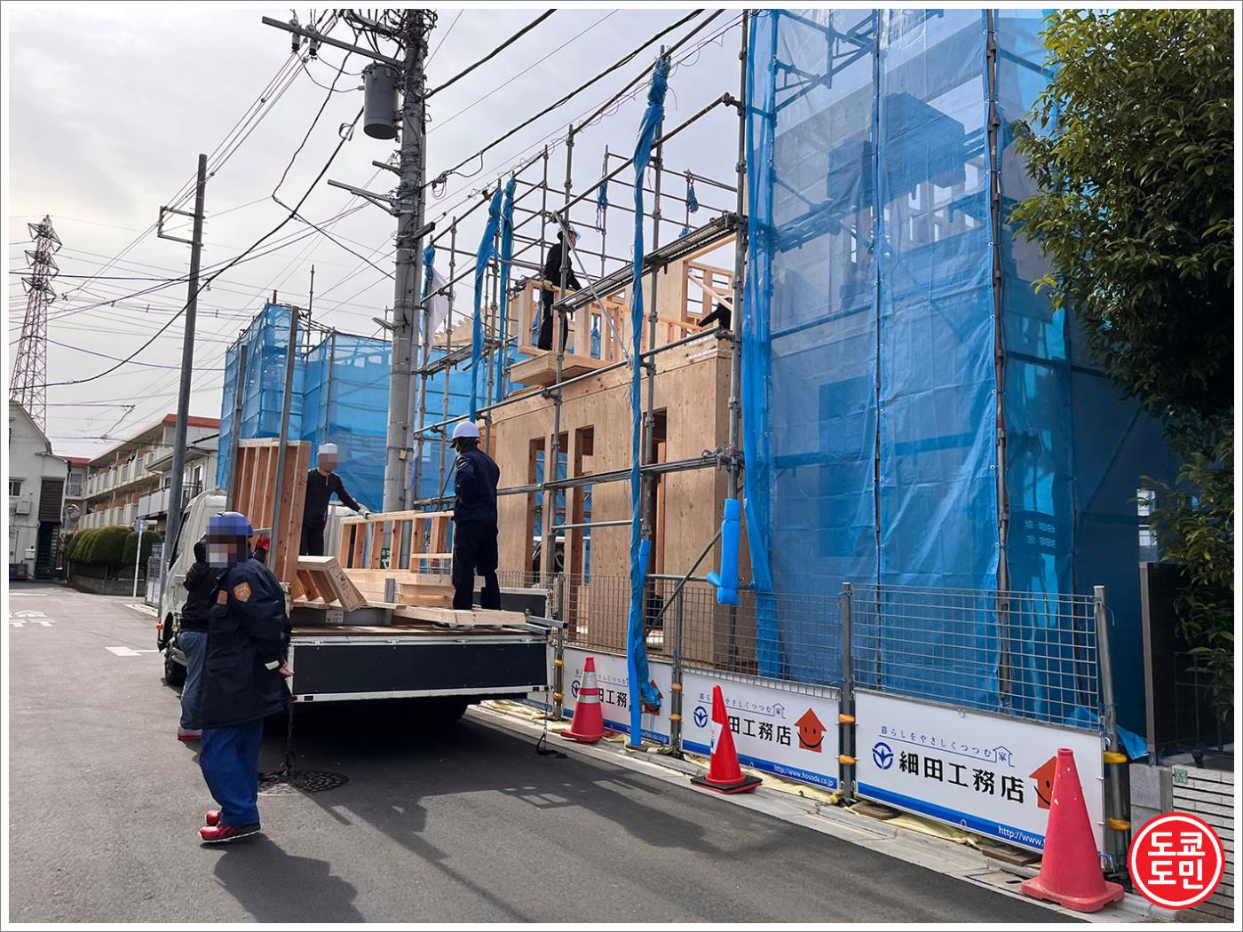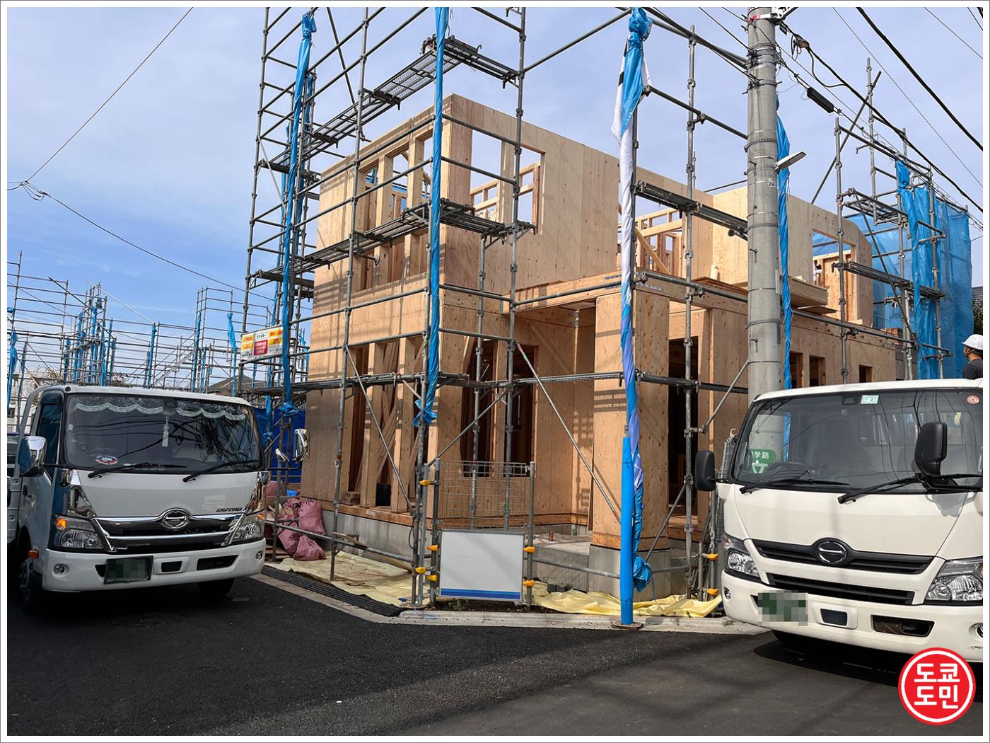 실제로 도쿄 집 주변을 산책하다가 단독주택인 목조주택을 건설하고 있는걸 보고 사진을 찍어봤습니다.