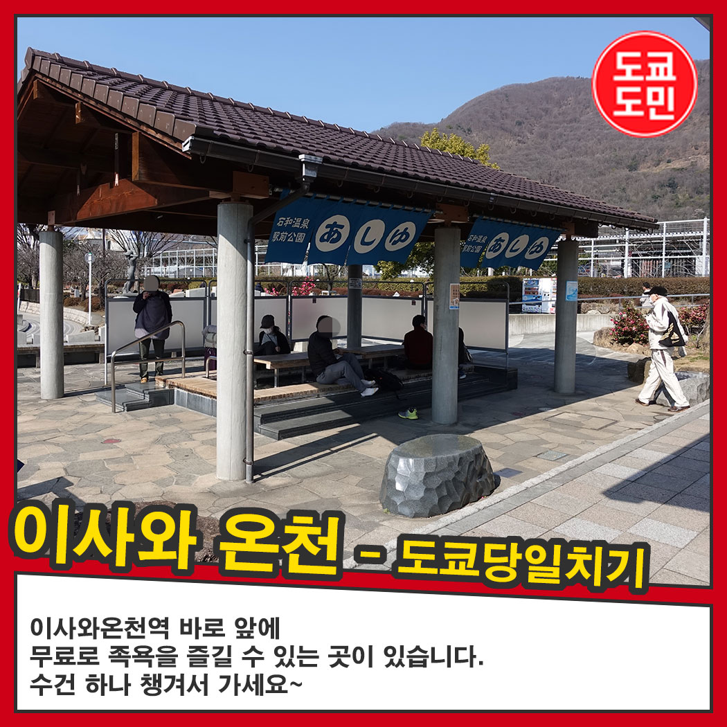 "이사와온천역" 바로 앞에 무료로 족욕을 즐길 수 있는 곳이 있습니다.