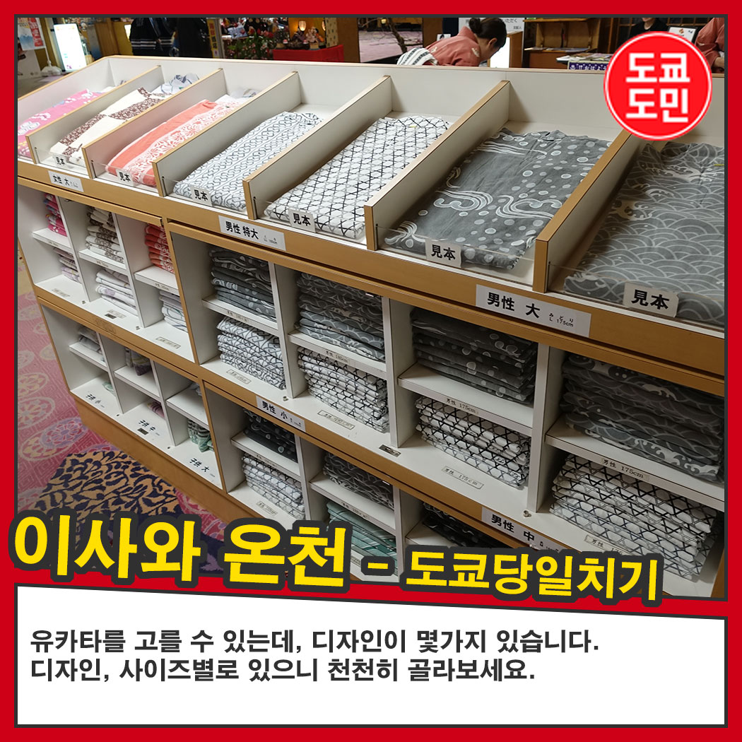 료칸에서 체크인을 하면 로비에서 유카타를 골라야 합니다.