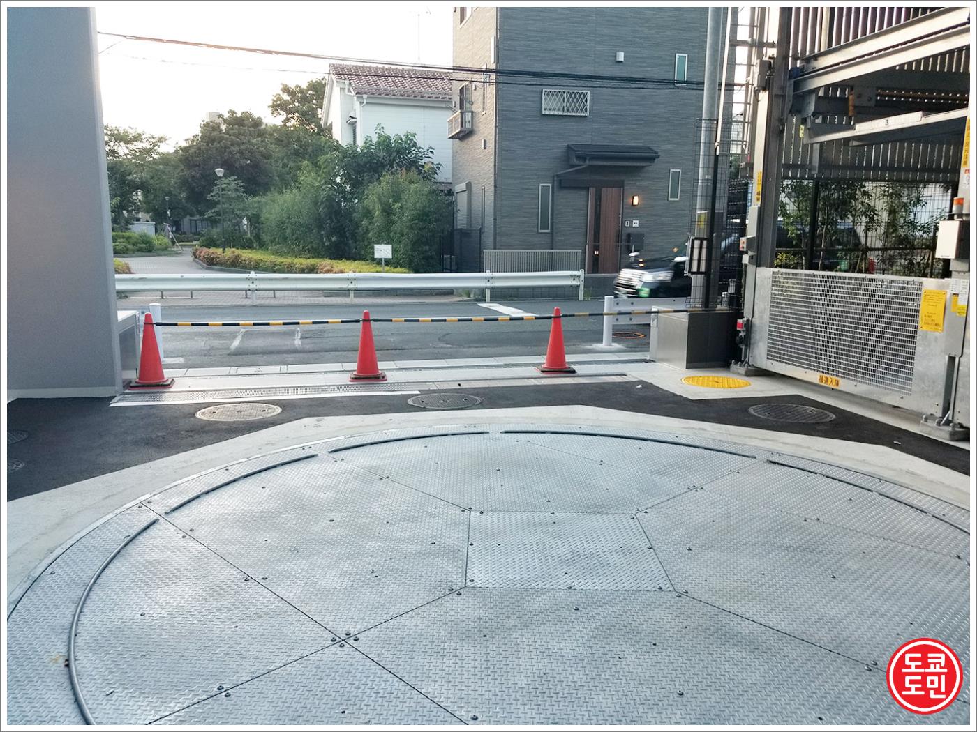 그래서 주차장 앞에는 이렇게 차량을 돌릴 수 있는 기계가 설치 되어 있습니다.
