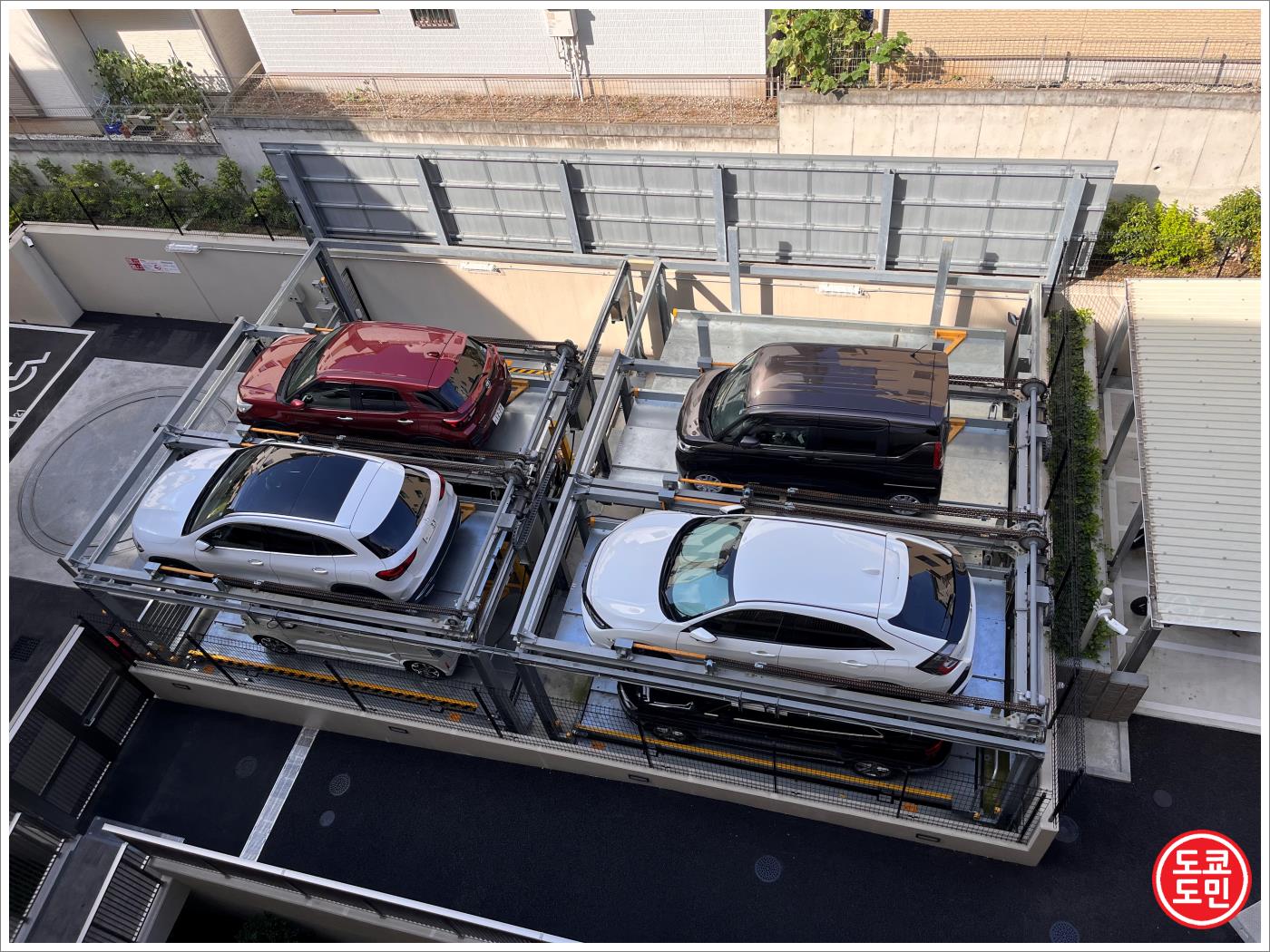 이 맨션의 경우에는 4층으로 된 입체 주차장입니다.