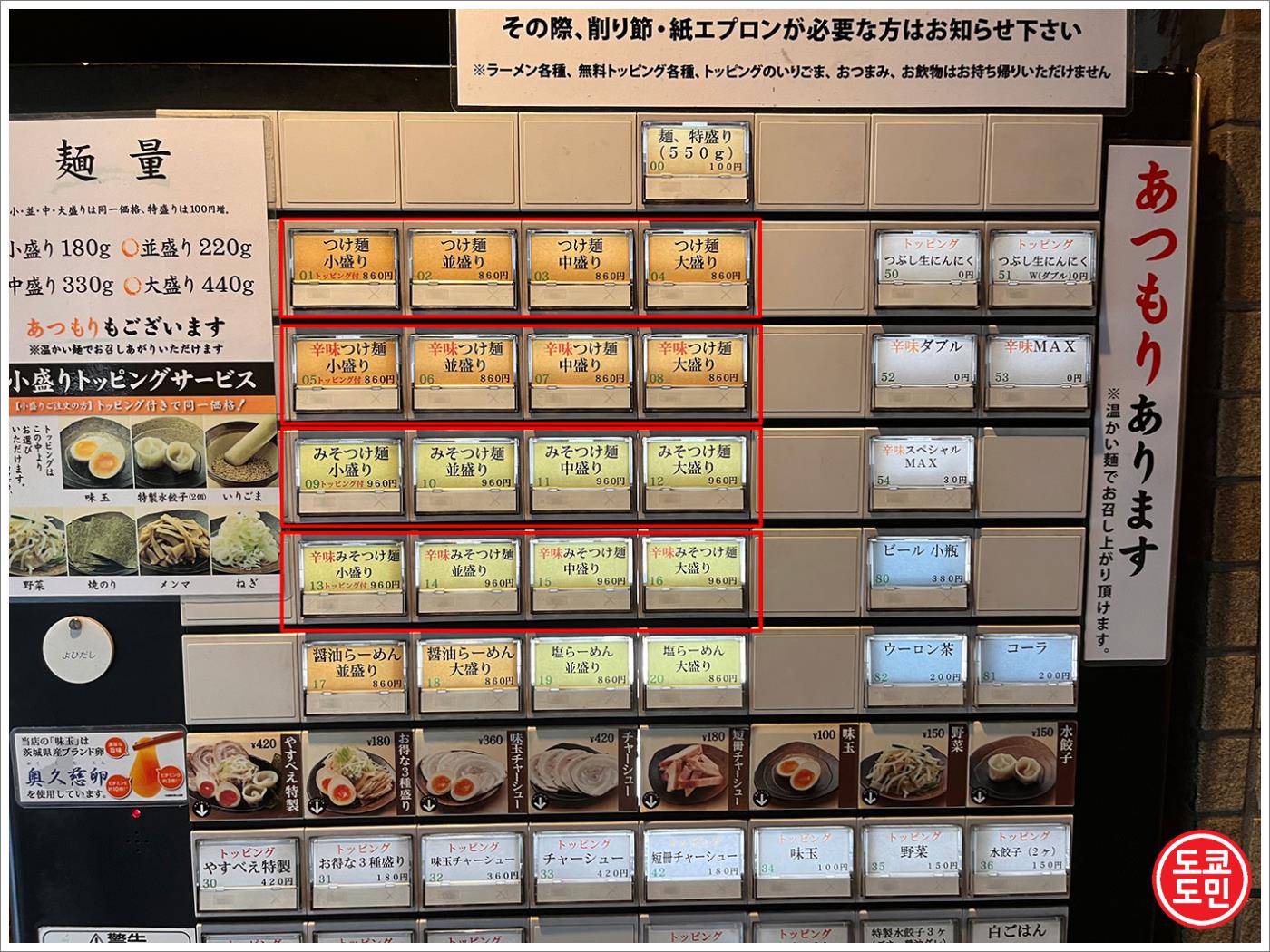 2번째 줄의 메뉴는 일반 츠케멘의 약간 매운버젼
