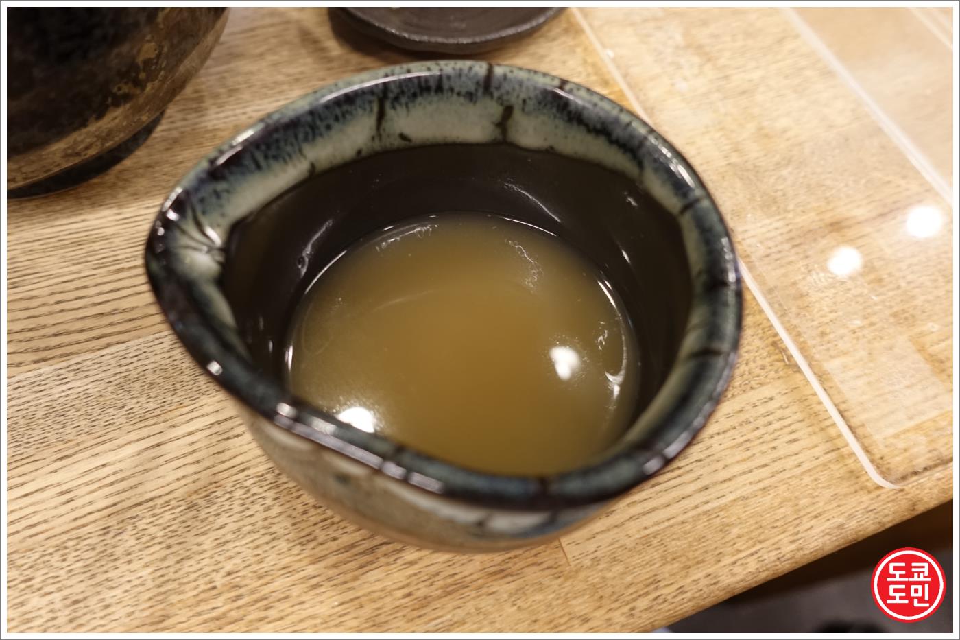 그러면 조그만한 그릇에 옅은 국물을 줍니다.