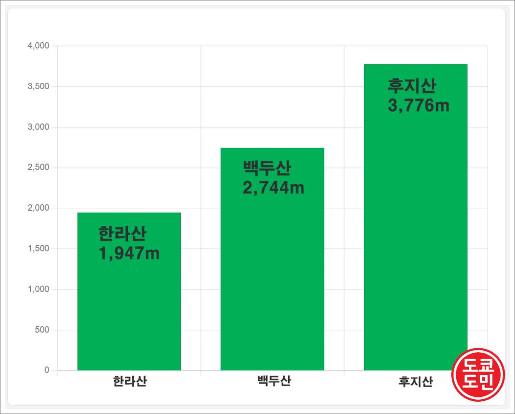 한라산, 백두산, 후지산 높이를 비교해볼까요?