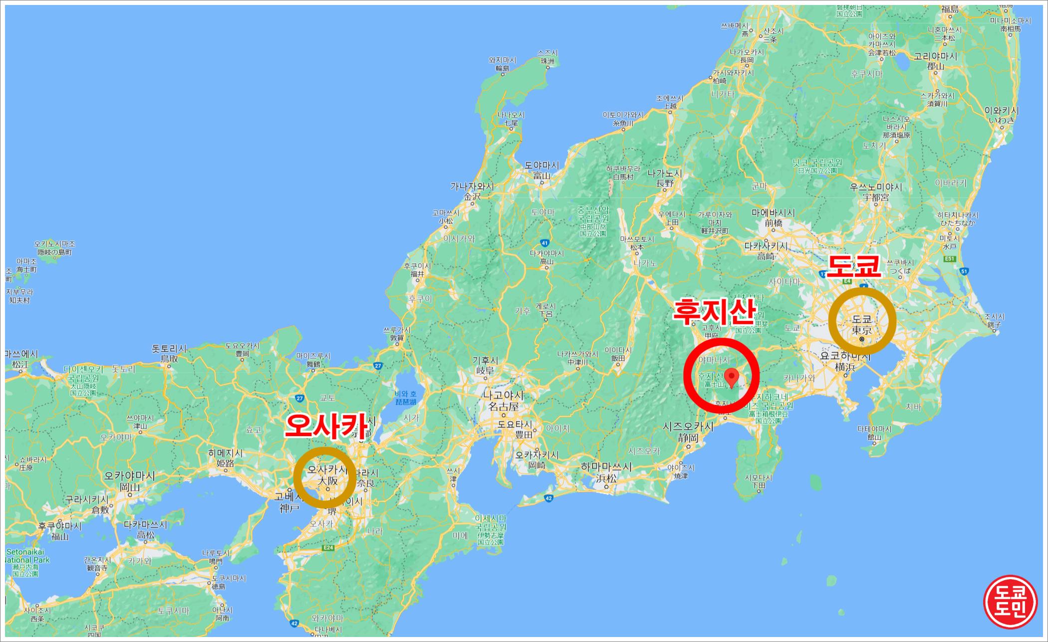 도쿄, 오사카와 후지산을 표시해봤습니다.