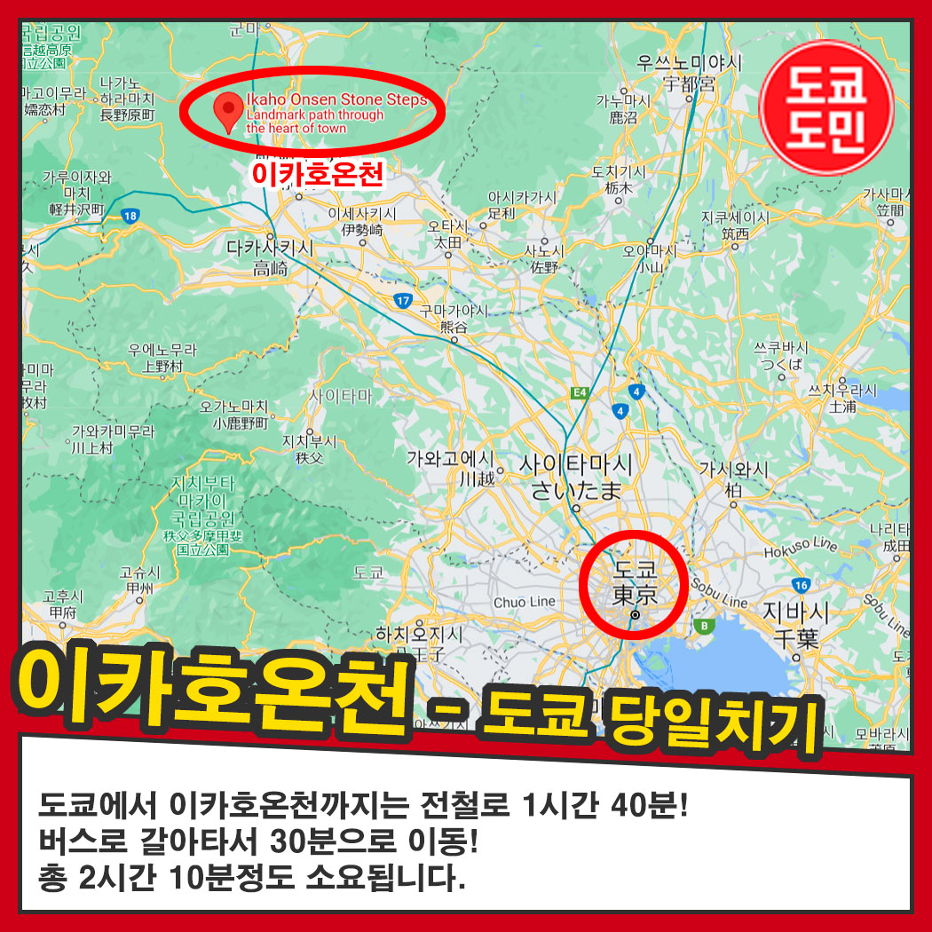 이카호온천(伊香保温泉)은 도쿄 우에노에서 시부카와역까지 전철로 1시간 40분!