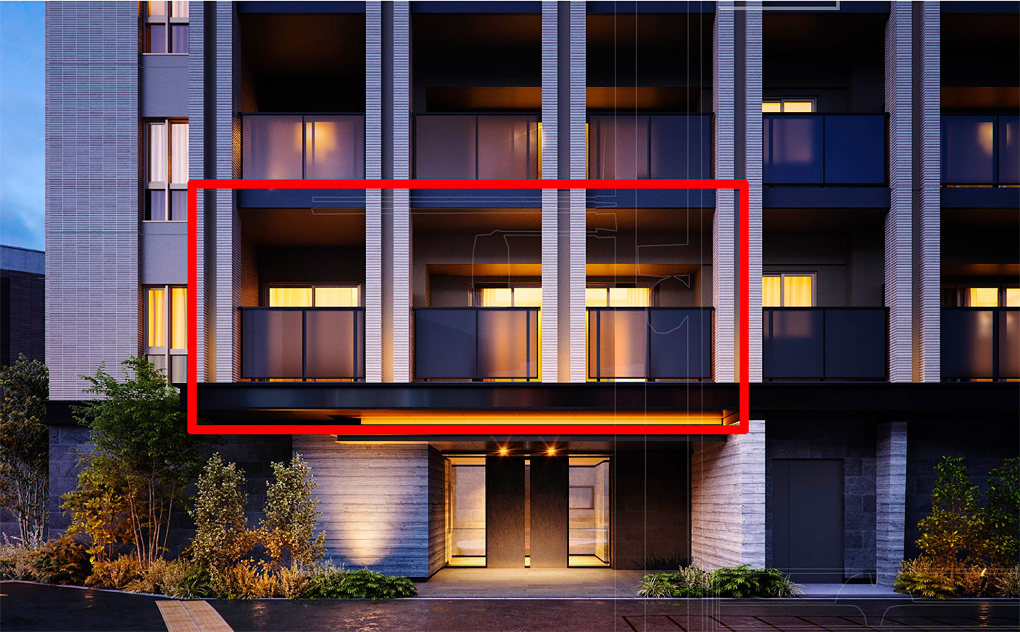 이 맨션의 입구 윗층인 빨간색으로 표시한 저 집은 피하는게 좋습니다.