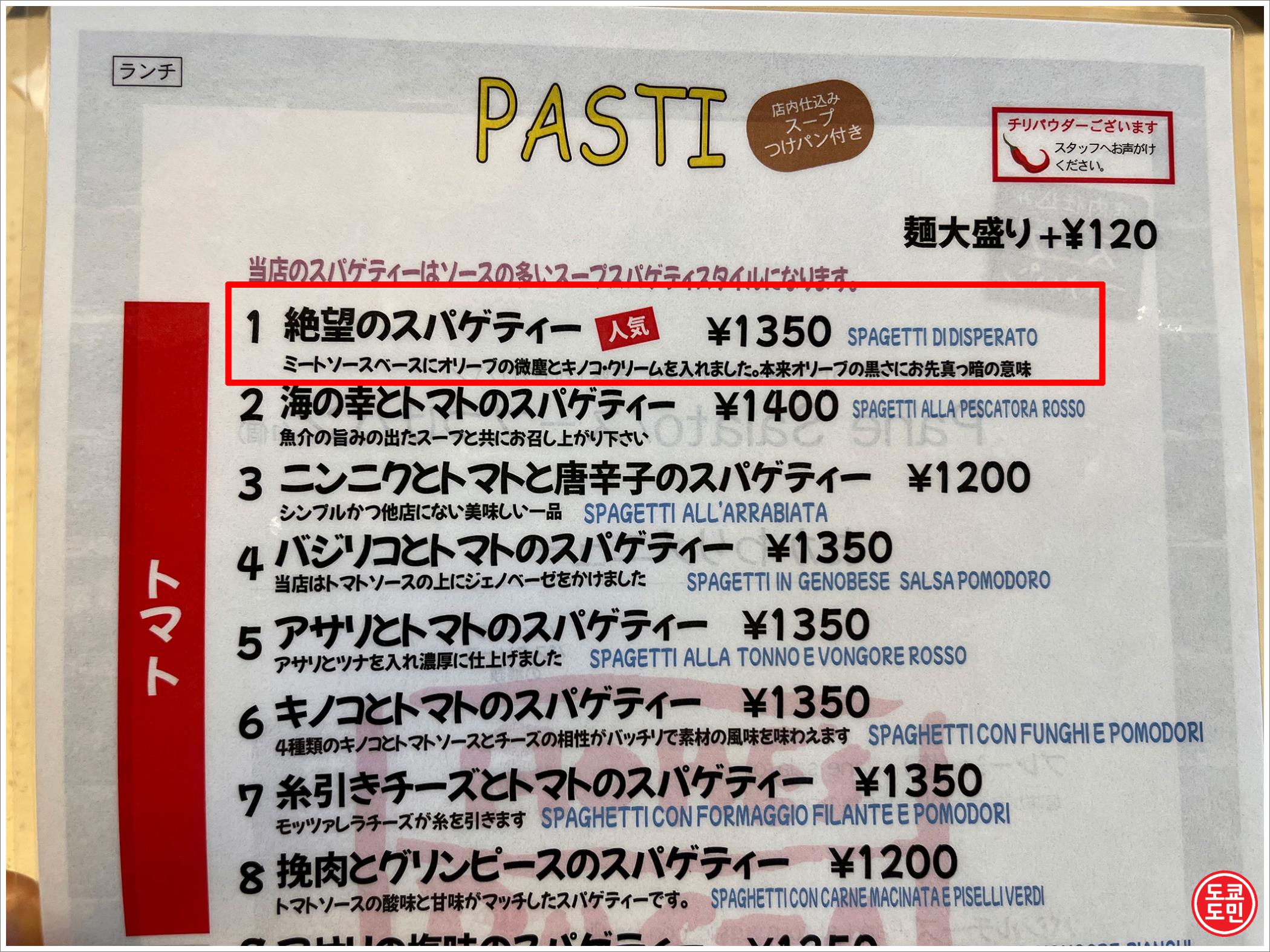 "이보 홈즈 파스타(IVO HOME'S PASTA)" 신주쿠점의 절망 파스타 입니다.