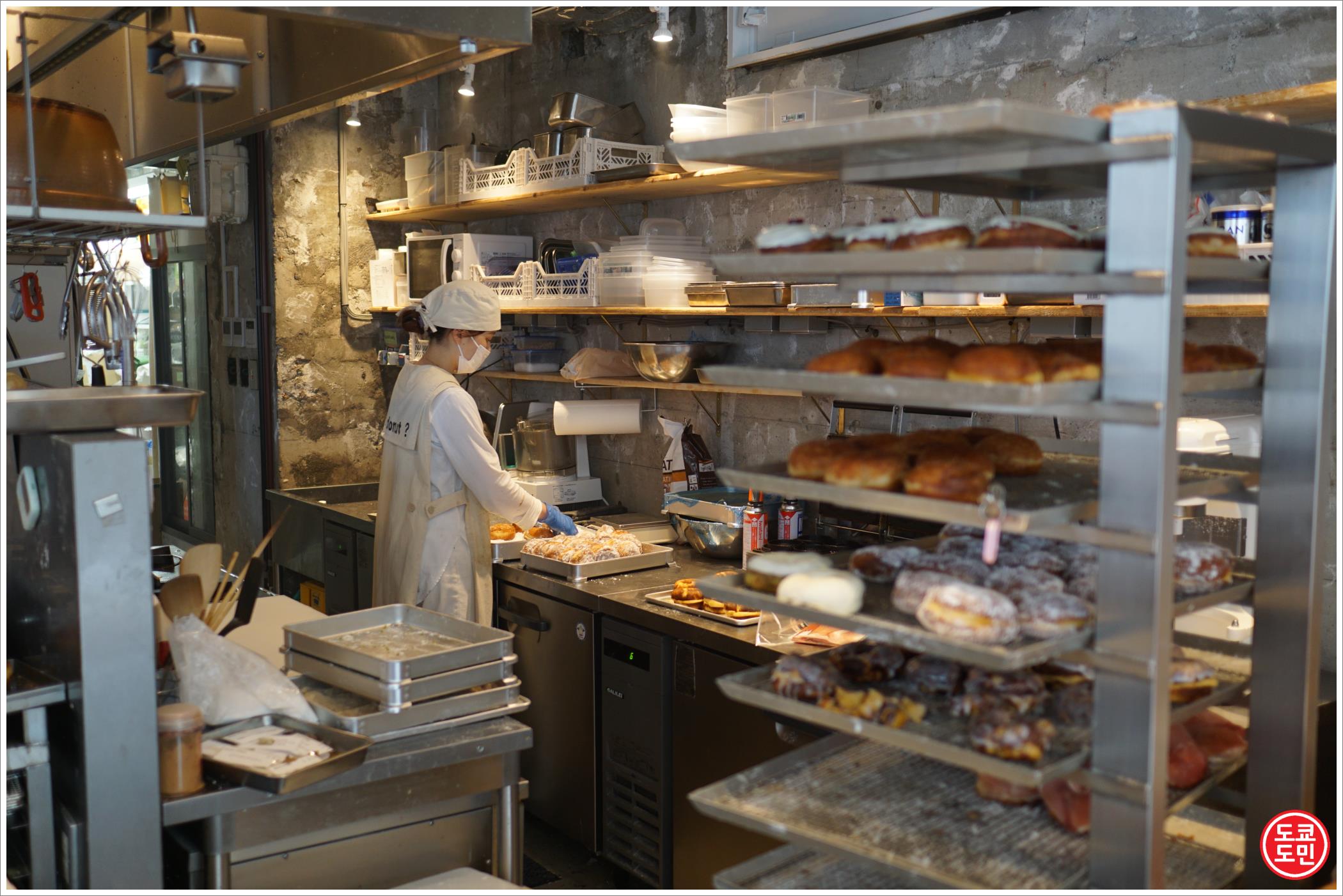 주방이 오픈형이고, 쉬지않고 계속 도너츠를 만들고 있었습니다.