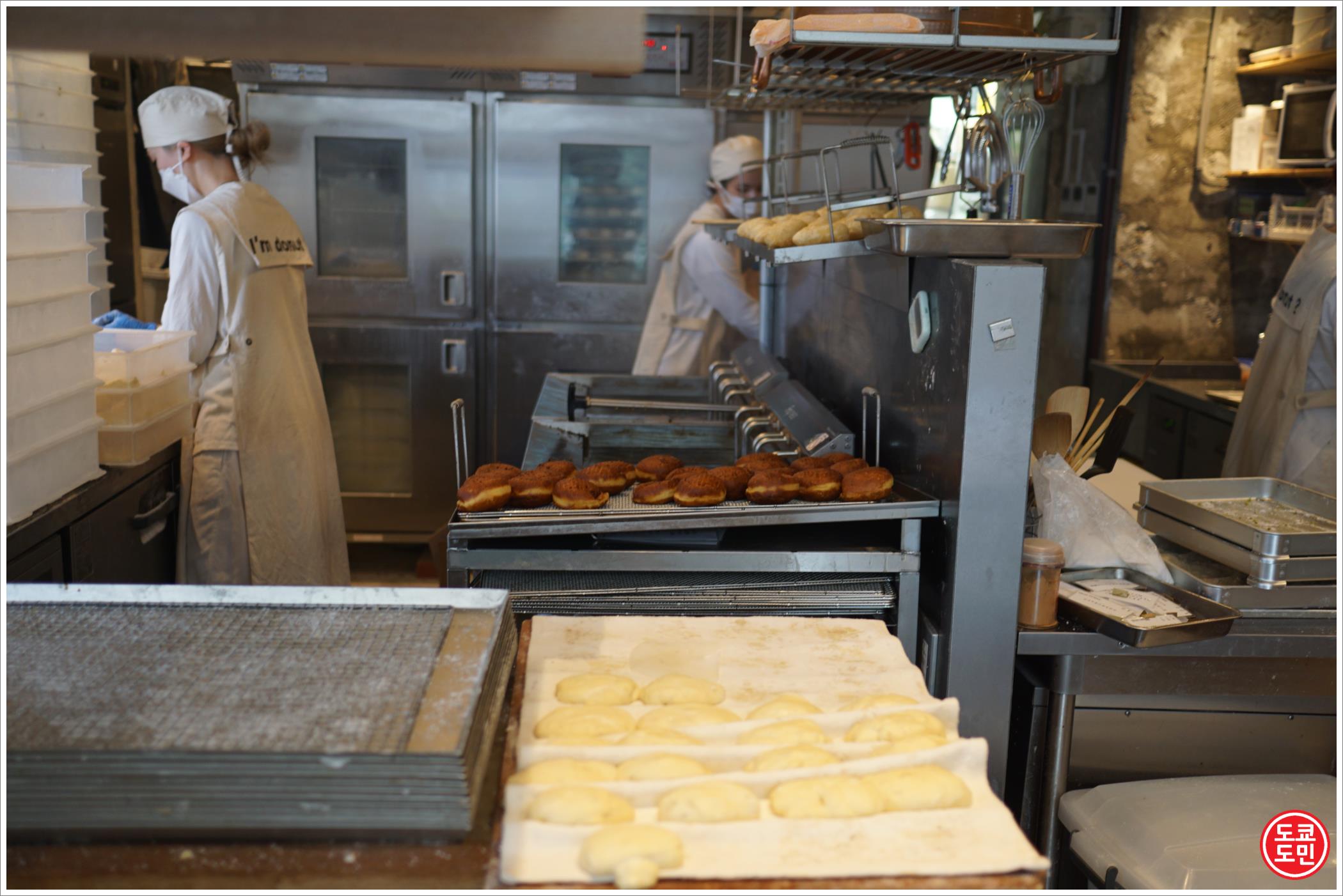 주방이 오픈형이고, 쉬지않고 계속 도너츠를 만들고 있었습니다.
