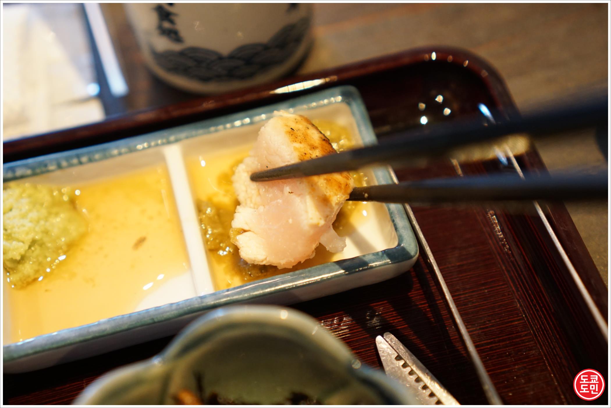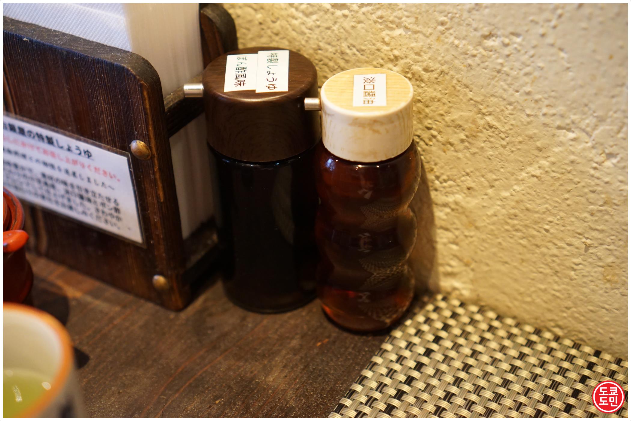 와사비와 유즈코쇼 라는게 나오는데 저기에 간장을 조금 부어서 같이 곁들여 드시면 됩니다.