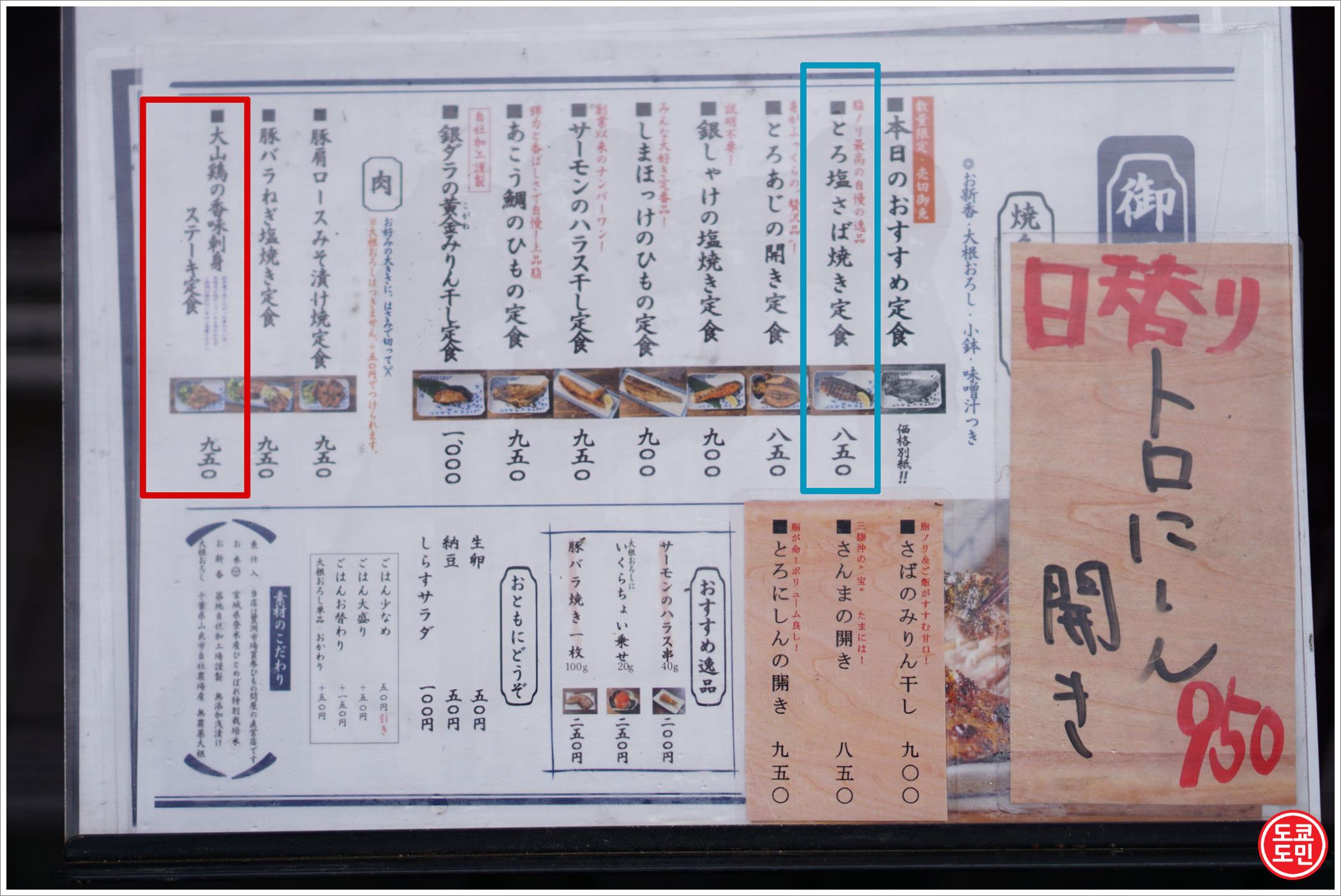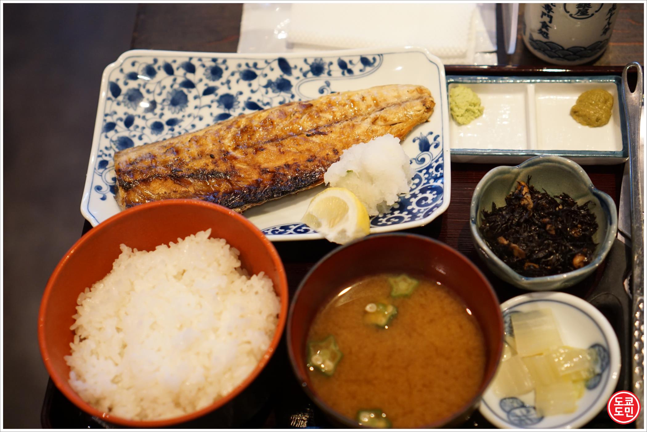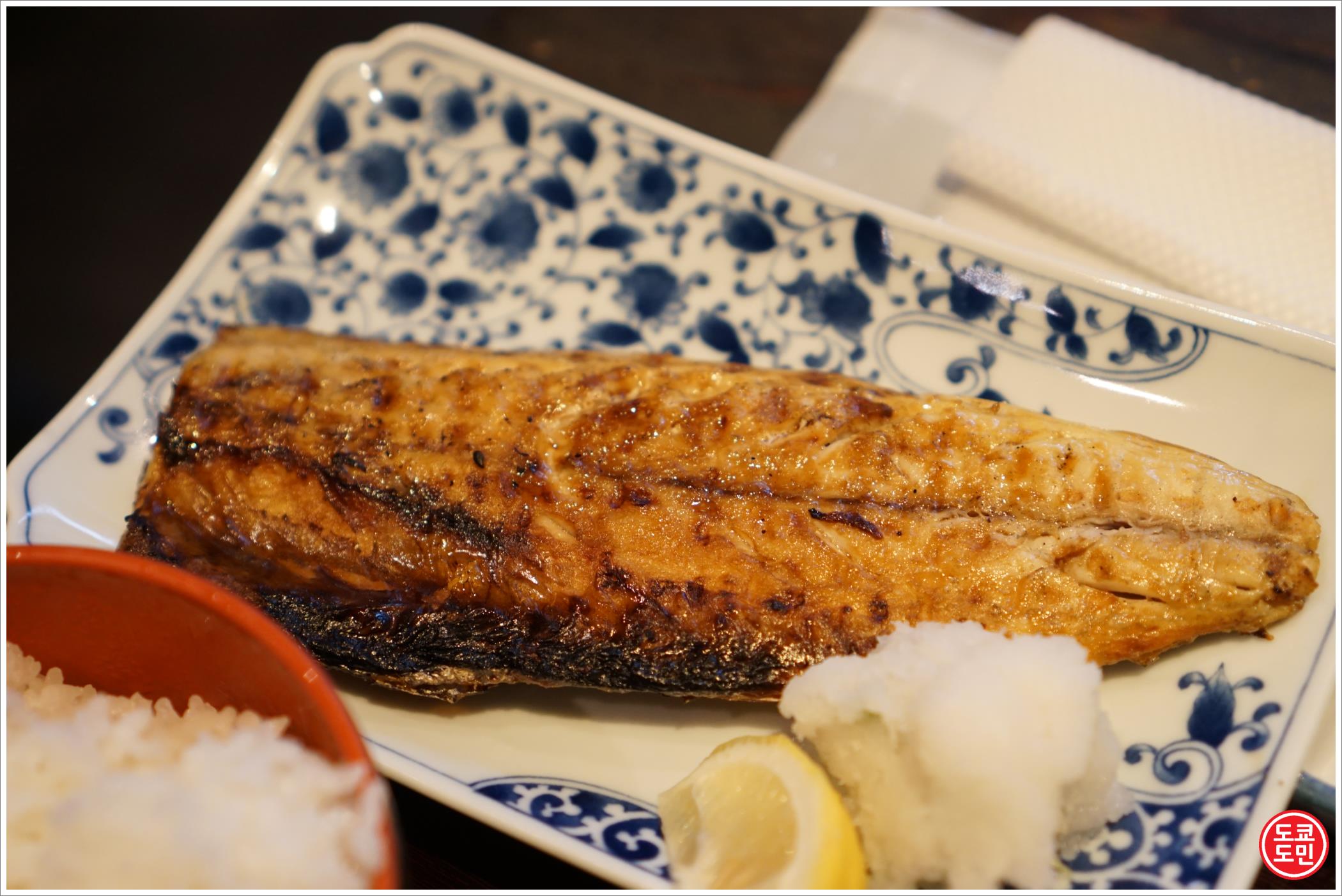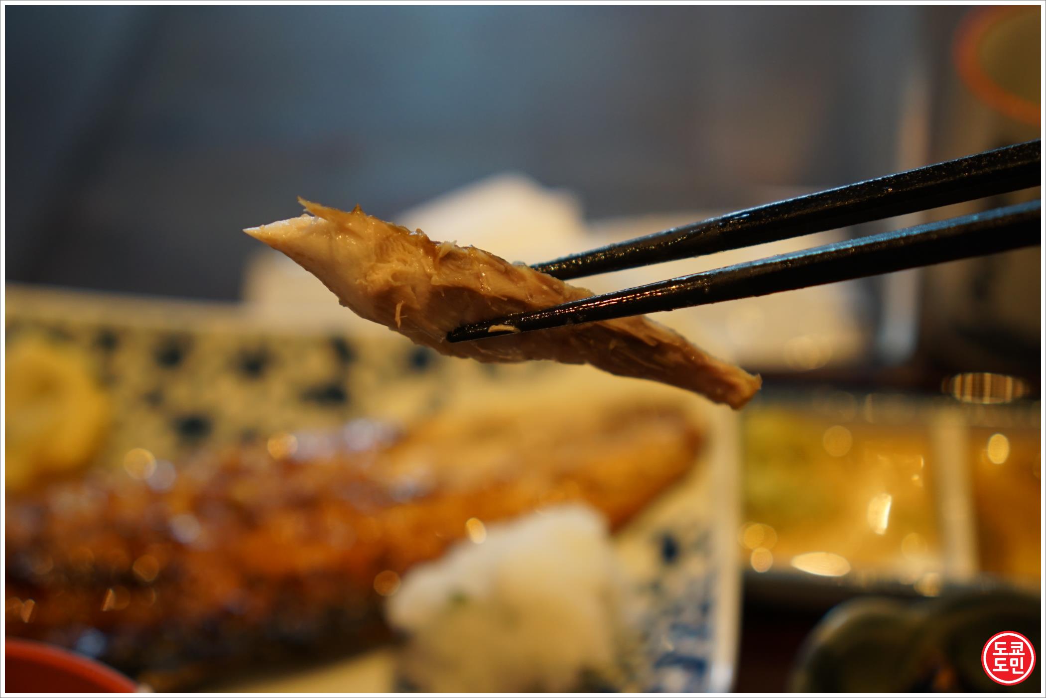 이게 메뉴판에 파란색으로 표시한 "고등어 소금구이 정식(とろ塩さば焼き定食)"입니다.