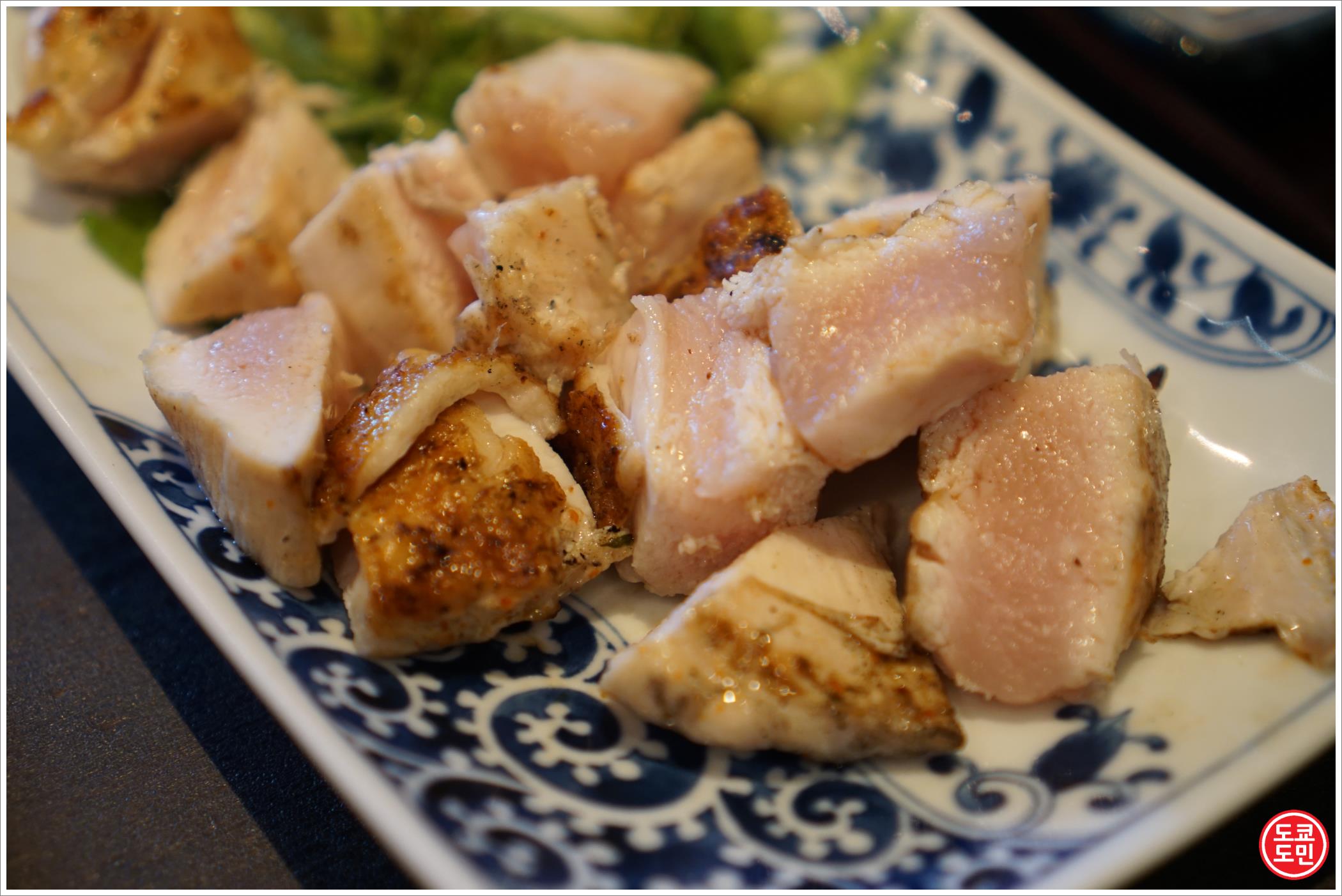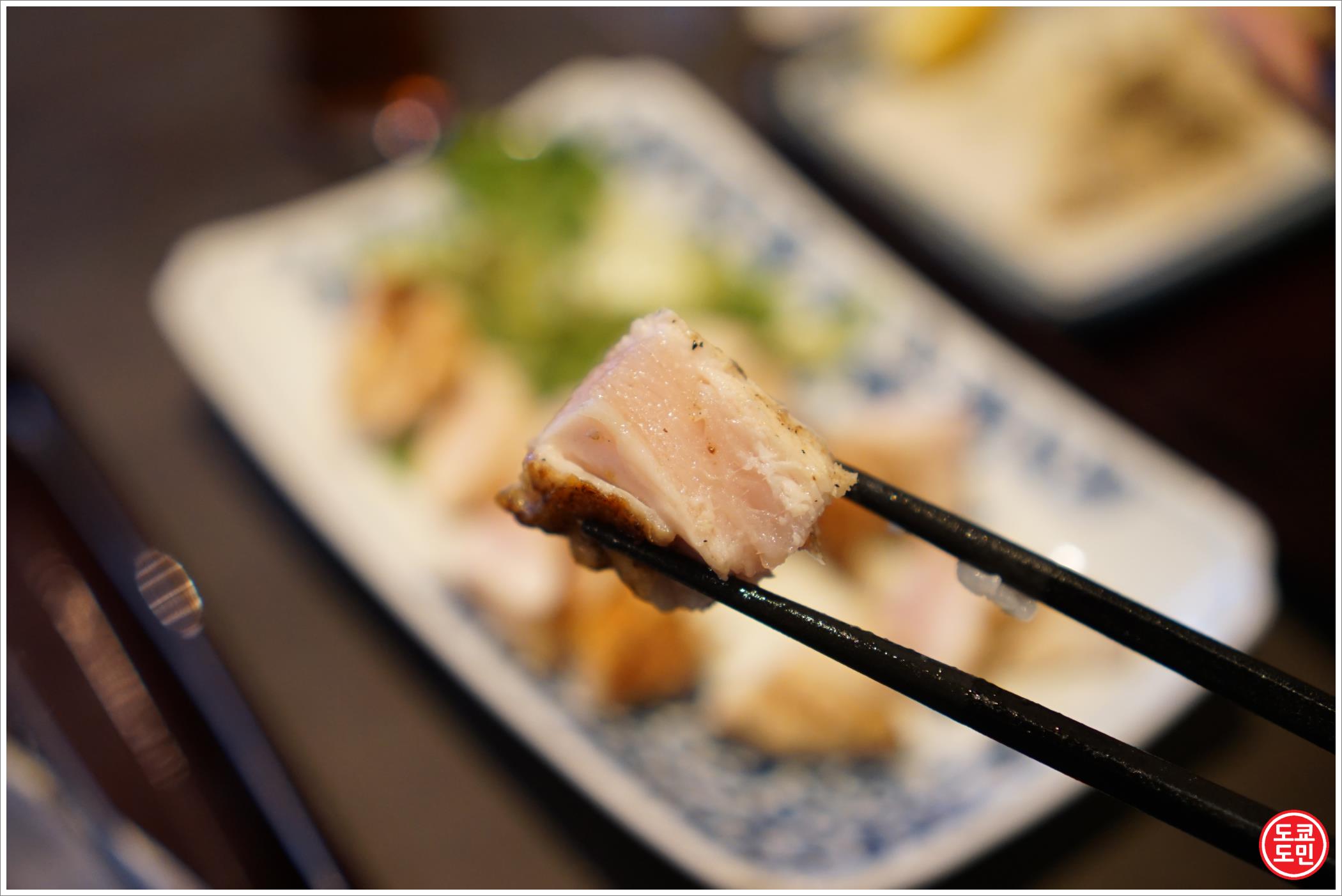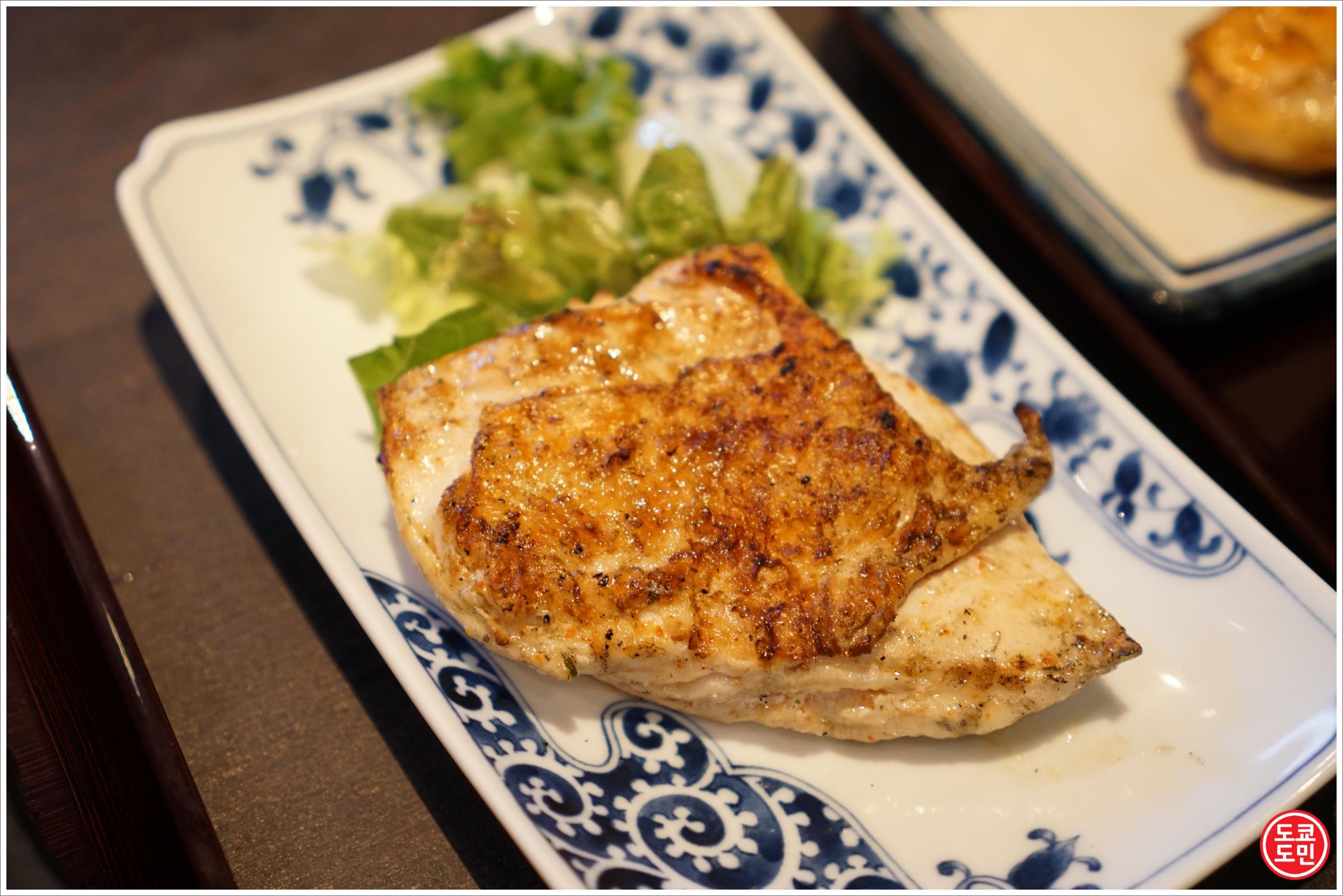 →"다이센도리" 라는 브랜드 닭의 사시미 스테이크 정식.
