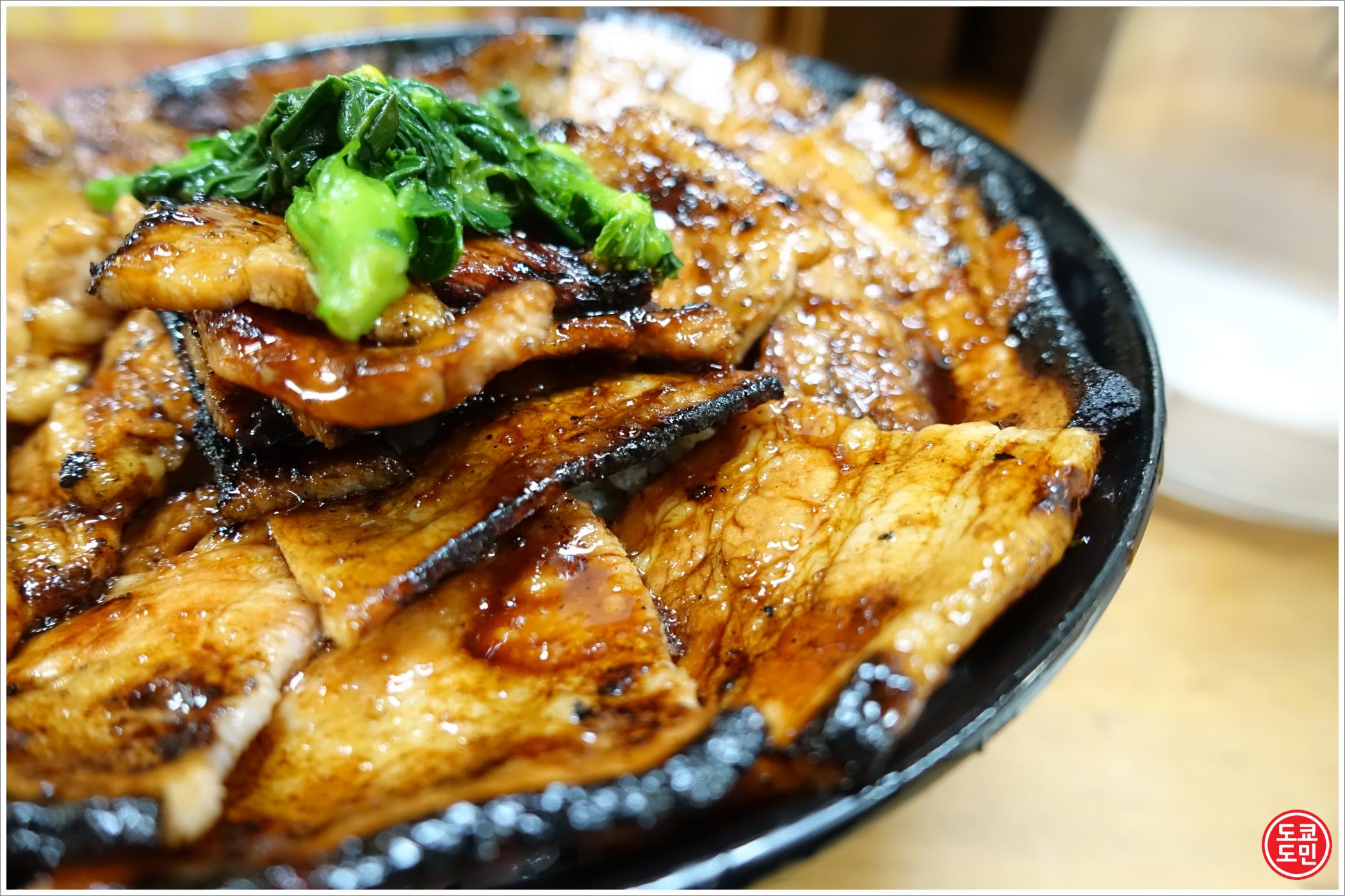 부타동은 숯불에 구워주는 가게도 있는데, "부타다이가쿠(豚大学)"의 경우, 가스렌지로 된 불판에 구워서 나옵니다.