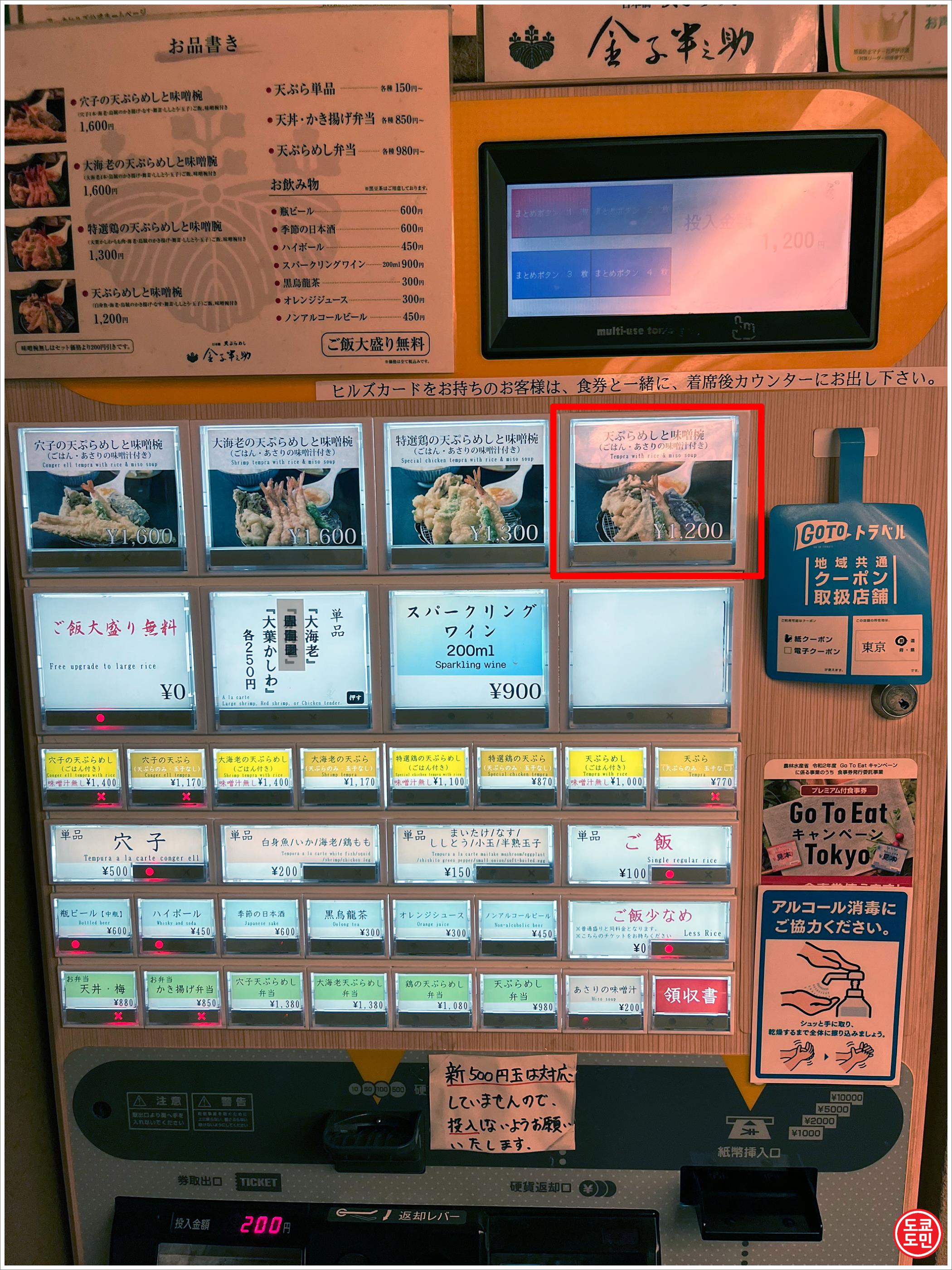 도쿄의 제이타쿠동(카이센동) 맛집인 "츠지한"의 계열중 하나인 텐푸라(덴푸라, 튀김)을 메인으로 하는 "카네코한노스케(金子半之助)".