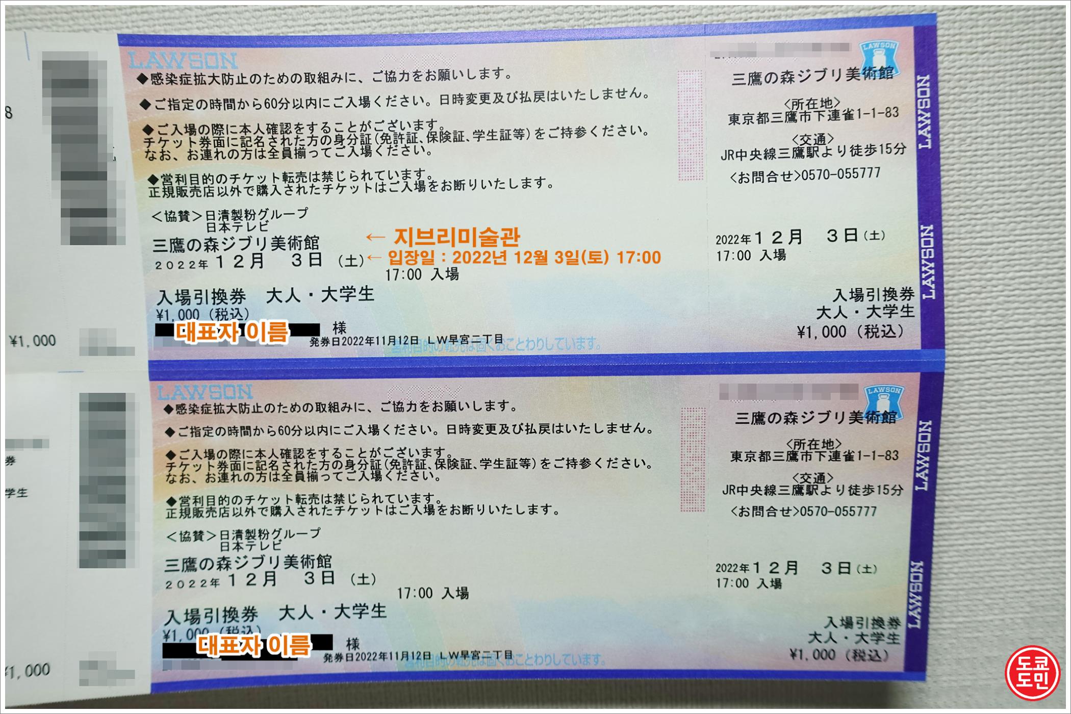 이번에는 "지브리 대창고"의 티켓만 예매에 성공했습니다.