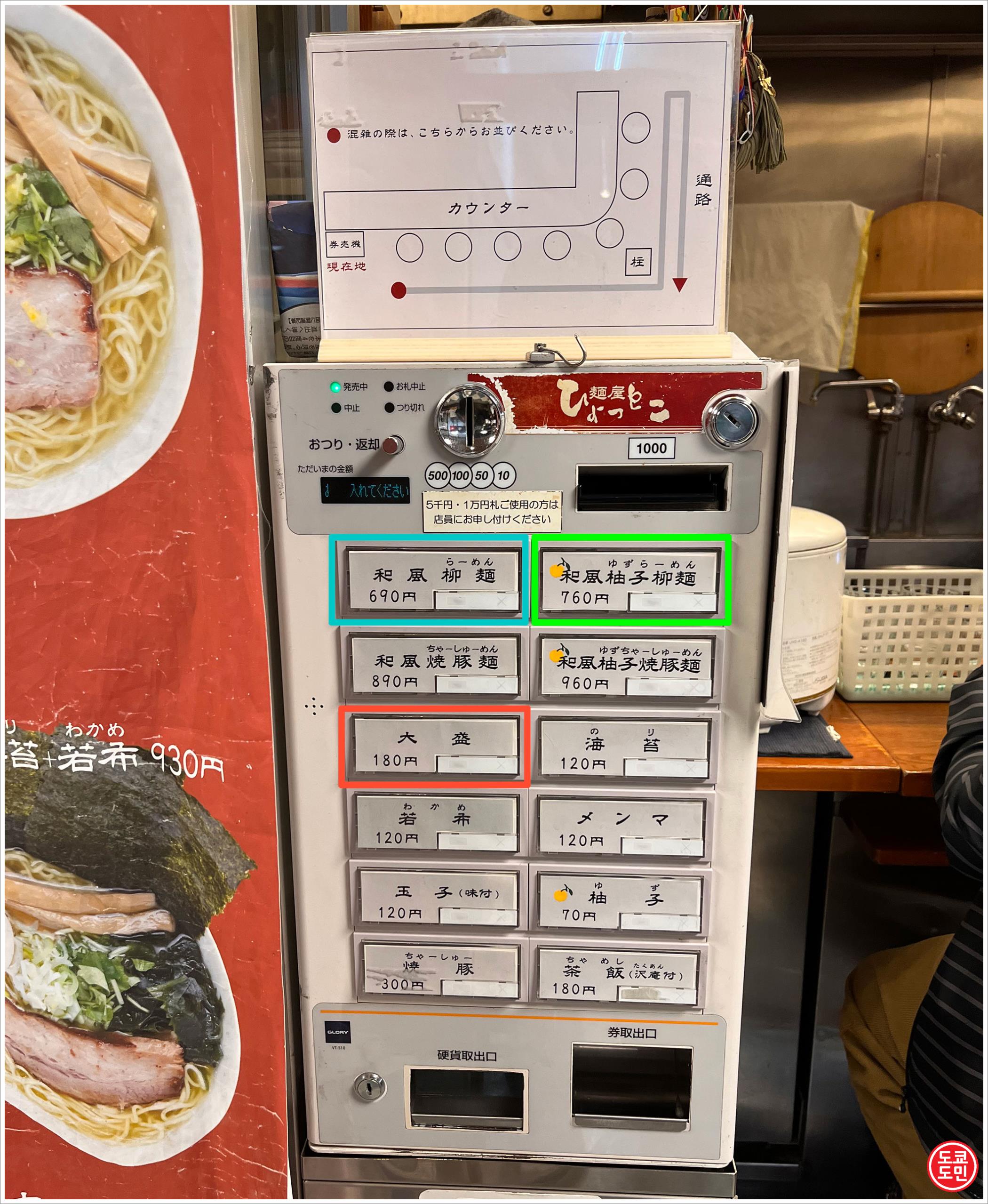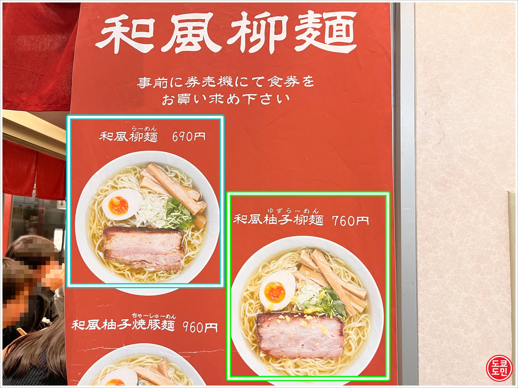 녹색 : 유즈라멘 760엔 (약 7,600원)