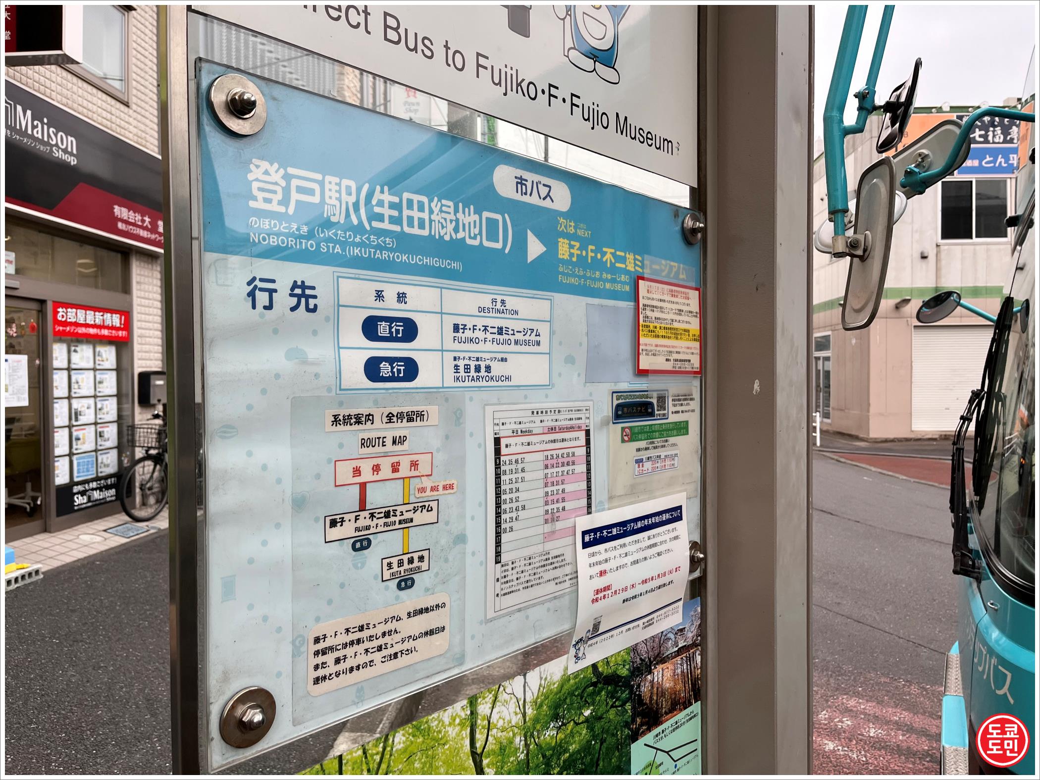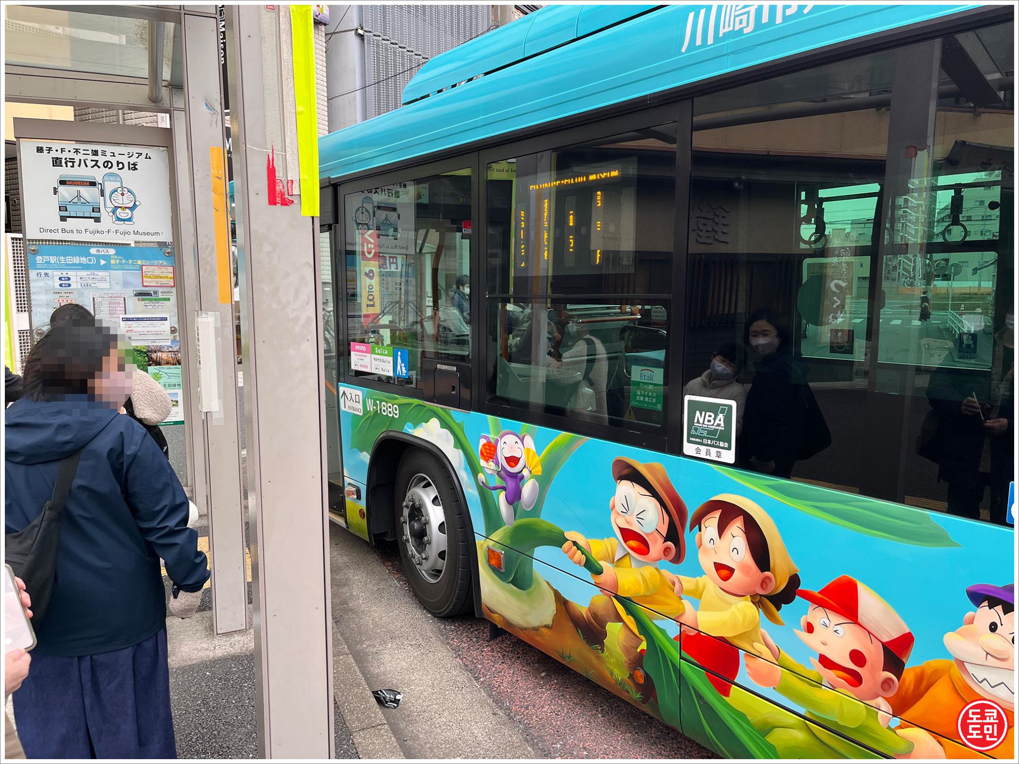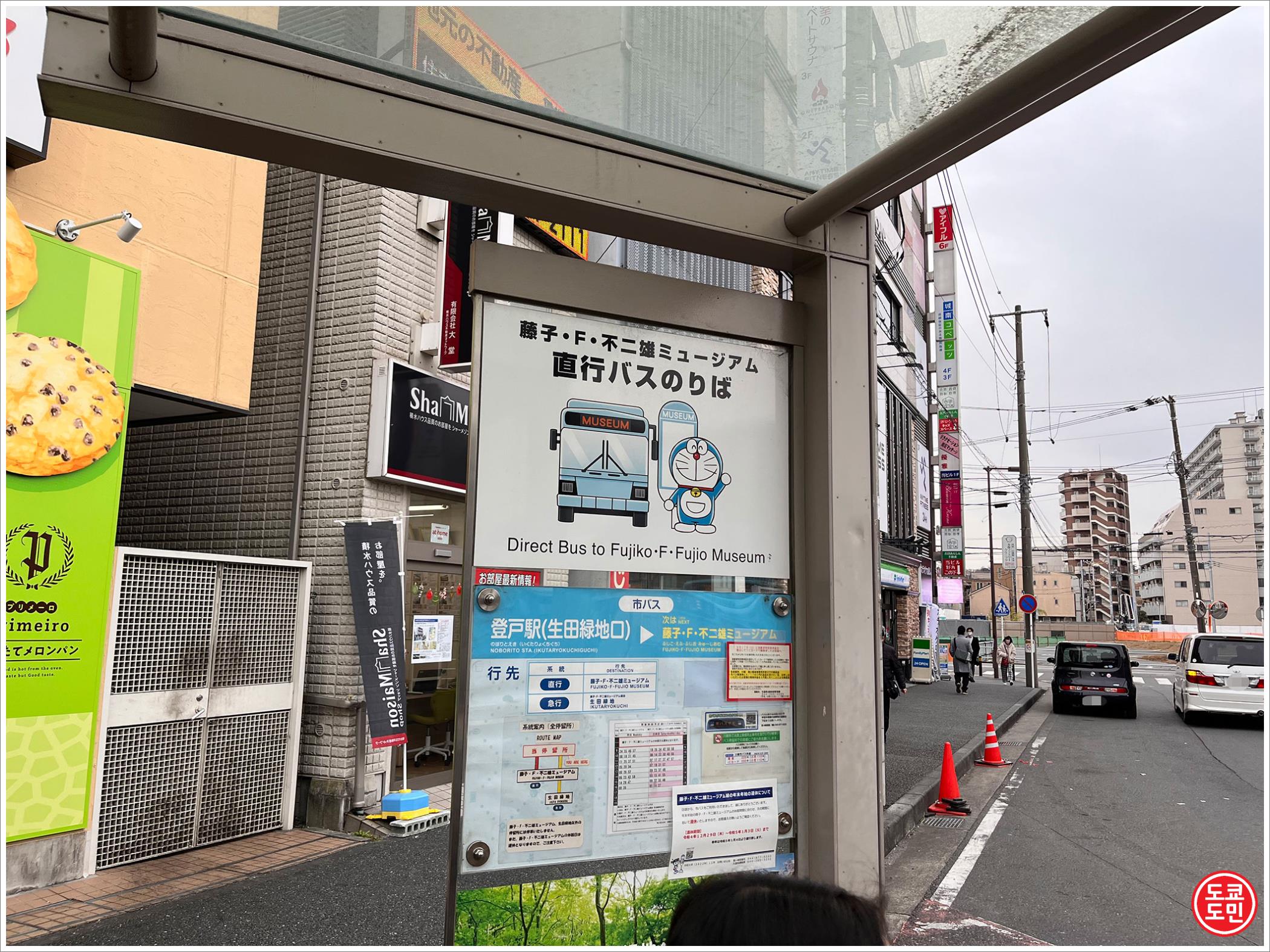 버스 타는 곳 앞에는 후지코 F 후지오 뮤지엄(도라에몽 박물관) 직행버스라고 적혀있고,