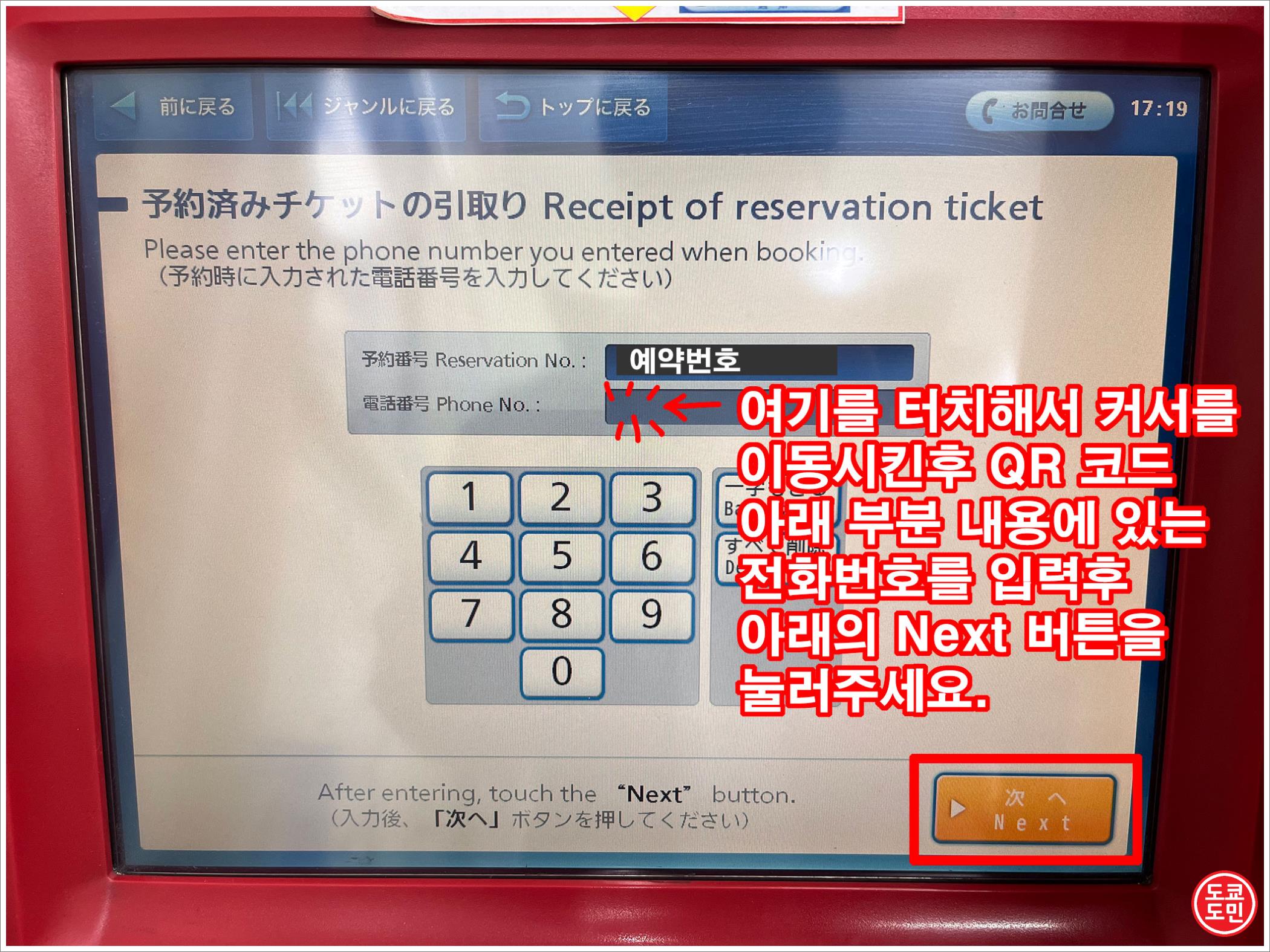 예약번호 밑에 전화번호 입력하는 곳이 있습니다.