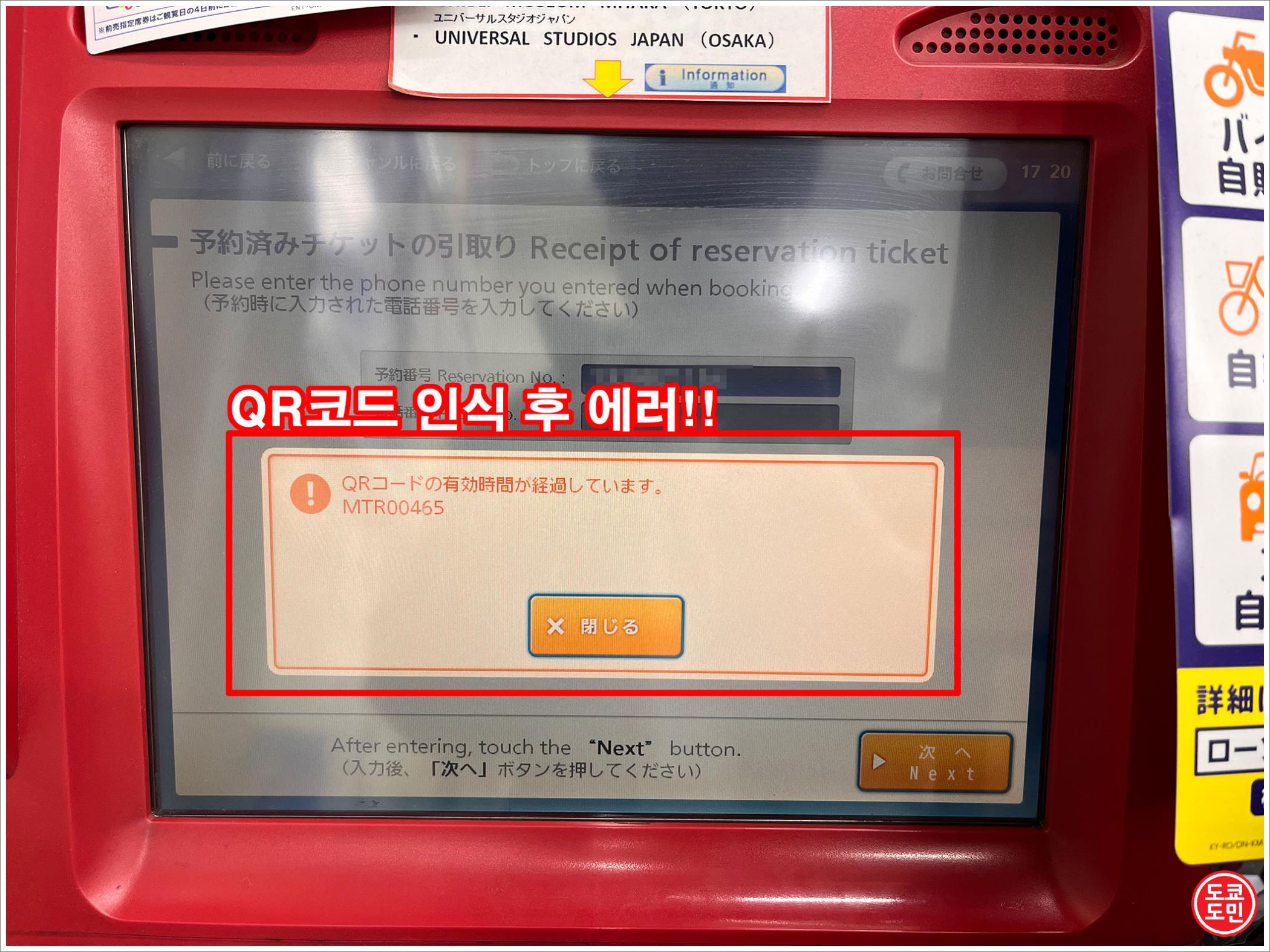 ■로손 Loppi 에서 QR코드로 발권시 에러 대처방법 (MTR00465)