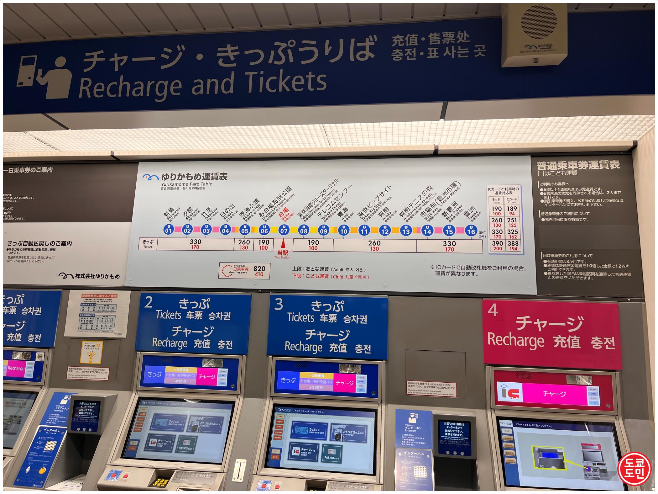 무인운전 전철이고, 거리에 따라 190~330엔입니다.