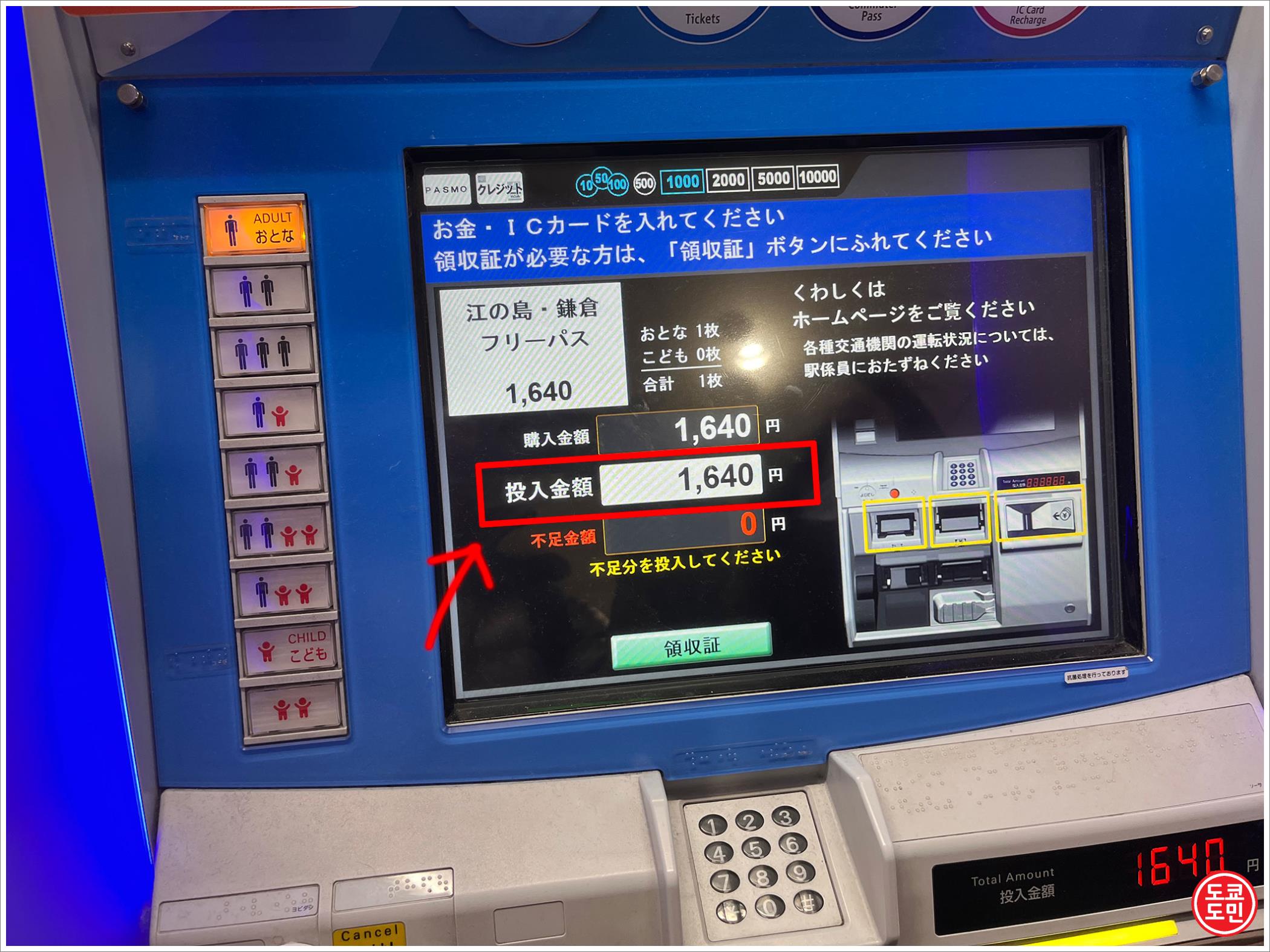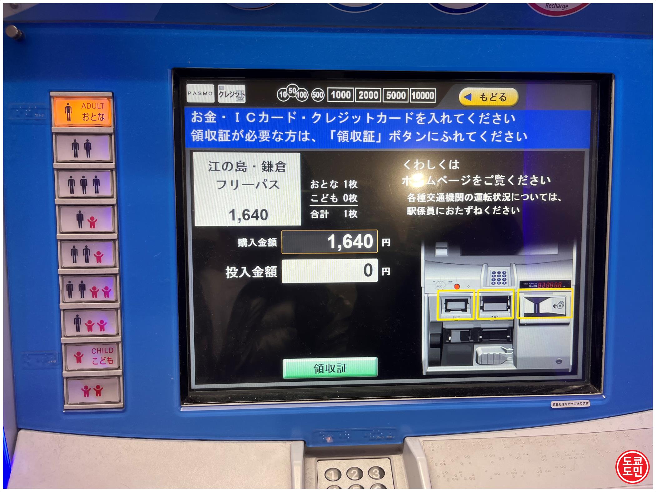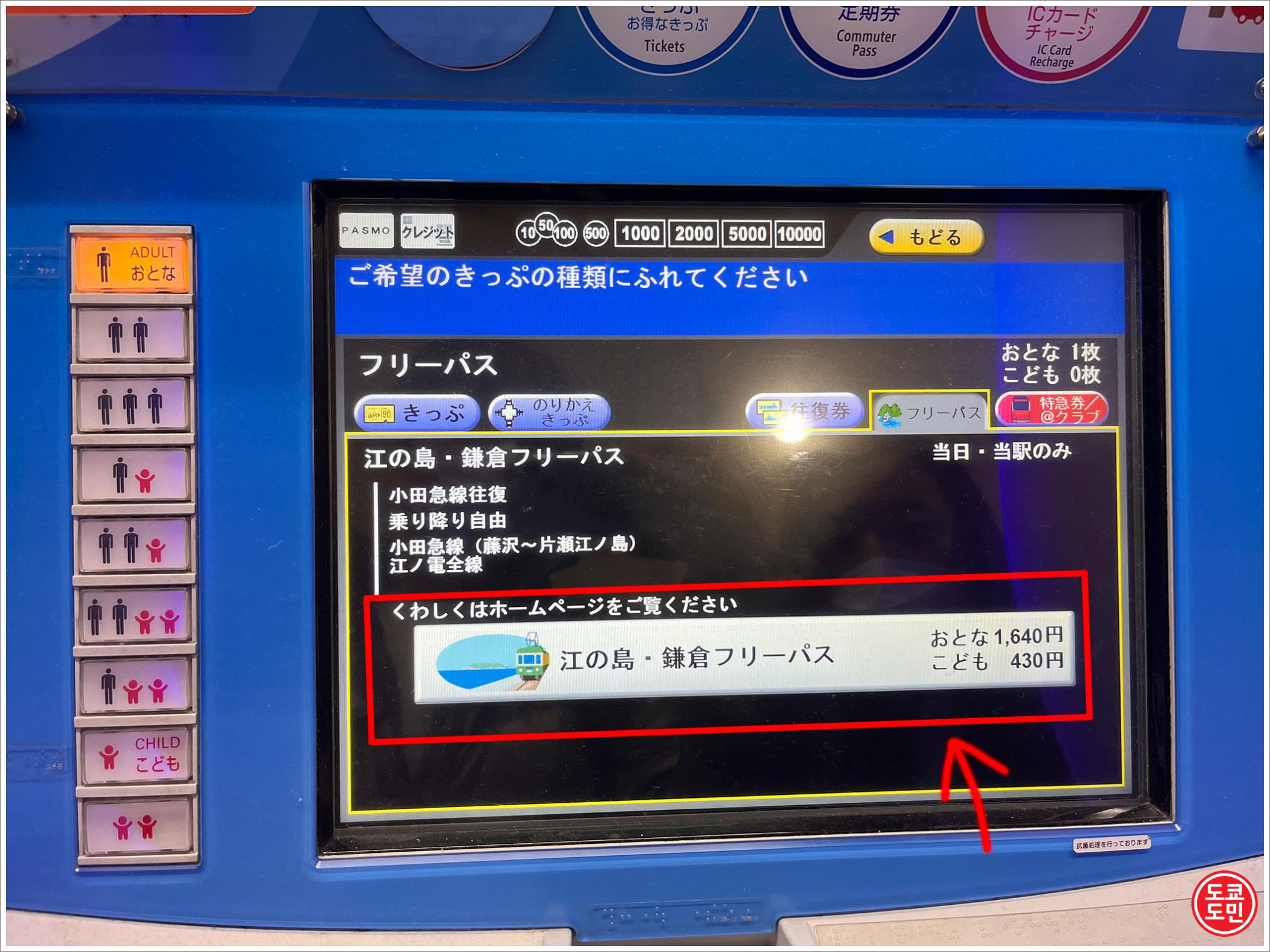 "江の島・鎌倉フリーパス(에노시마, 카마쿠라 프리패스)" 버튼을 누릅니다.