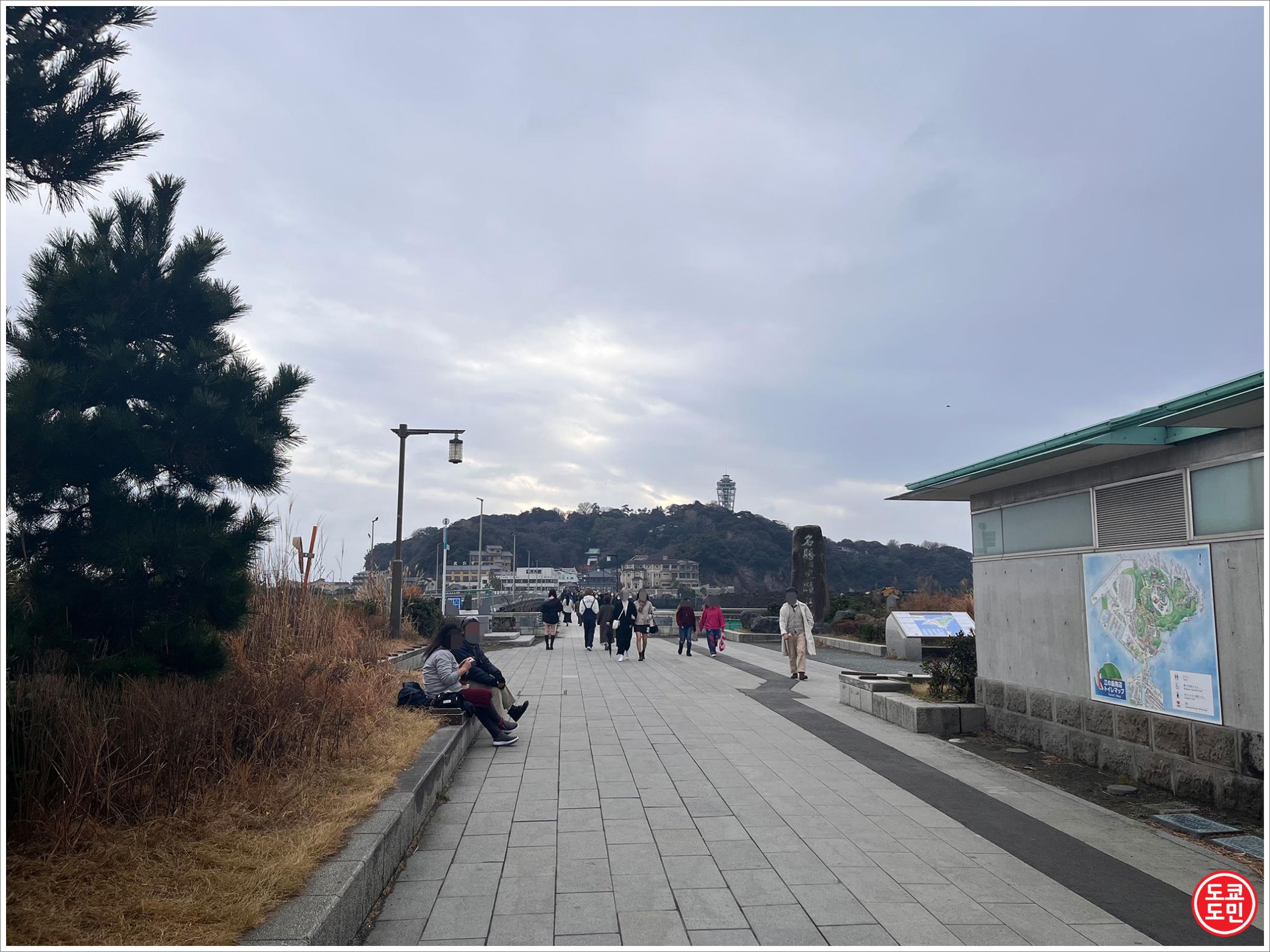 카타세 에노시마역에서 에노시마로 가는 긴 다리가 있는데 이렇게 걸어서 가면 됩니다.