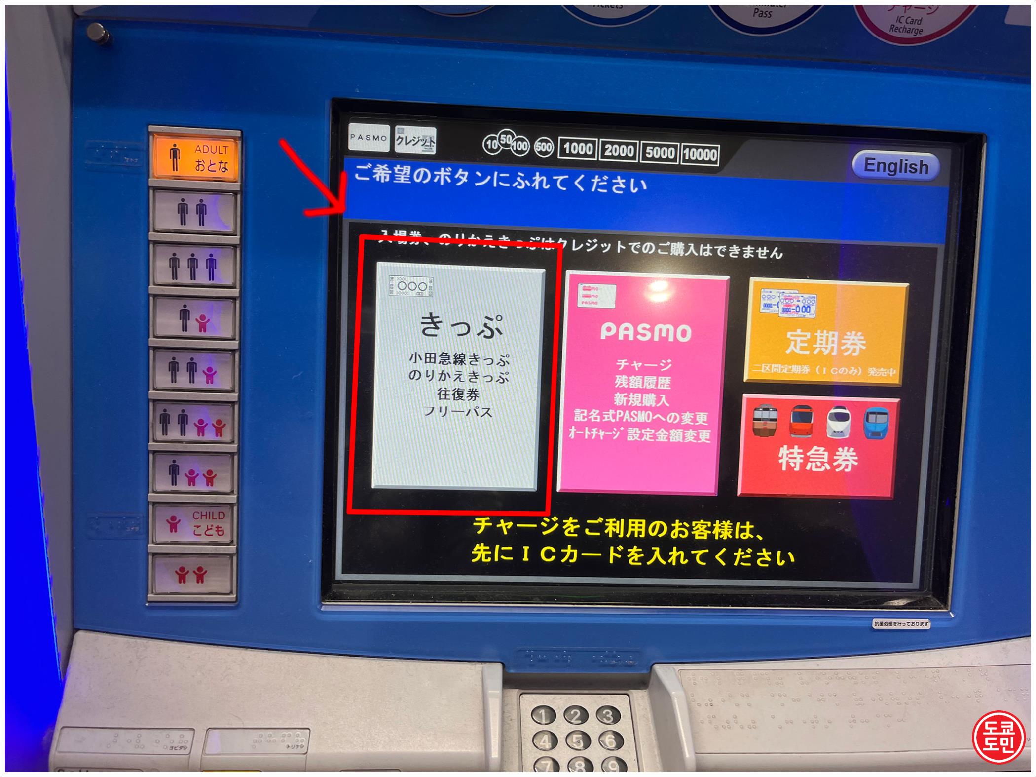 오다큐선의 쾌속급행 전철을 타고 에노시마로 가는거라서 오다큐선 타는 곳 근처에 있는 티켓 발매기를 이용합니다.