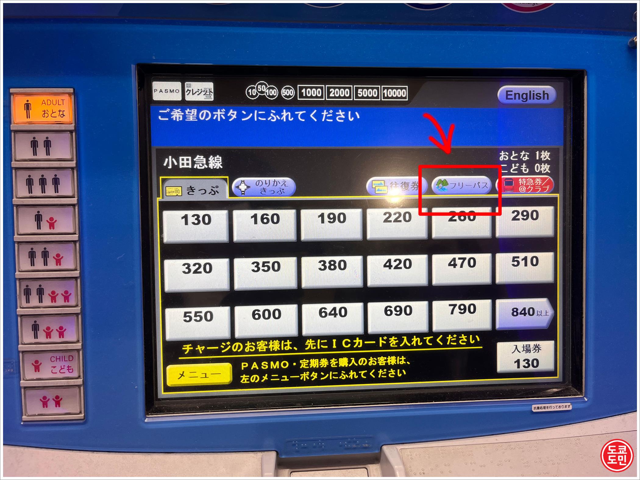 오다큐선 티켓 판매소(小田急線きっぷうりば) 에 있는 티켓 발매기를 이용해서 에노시마, 카마쿠라 프리패스를 구입합니다.