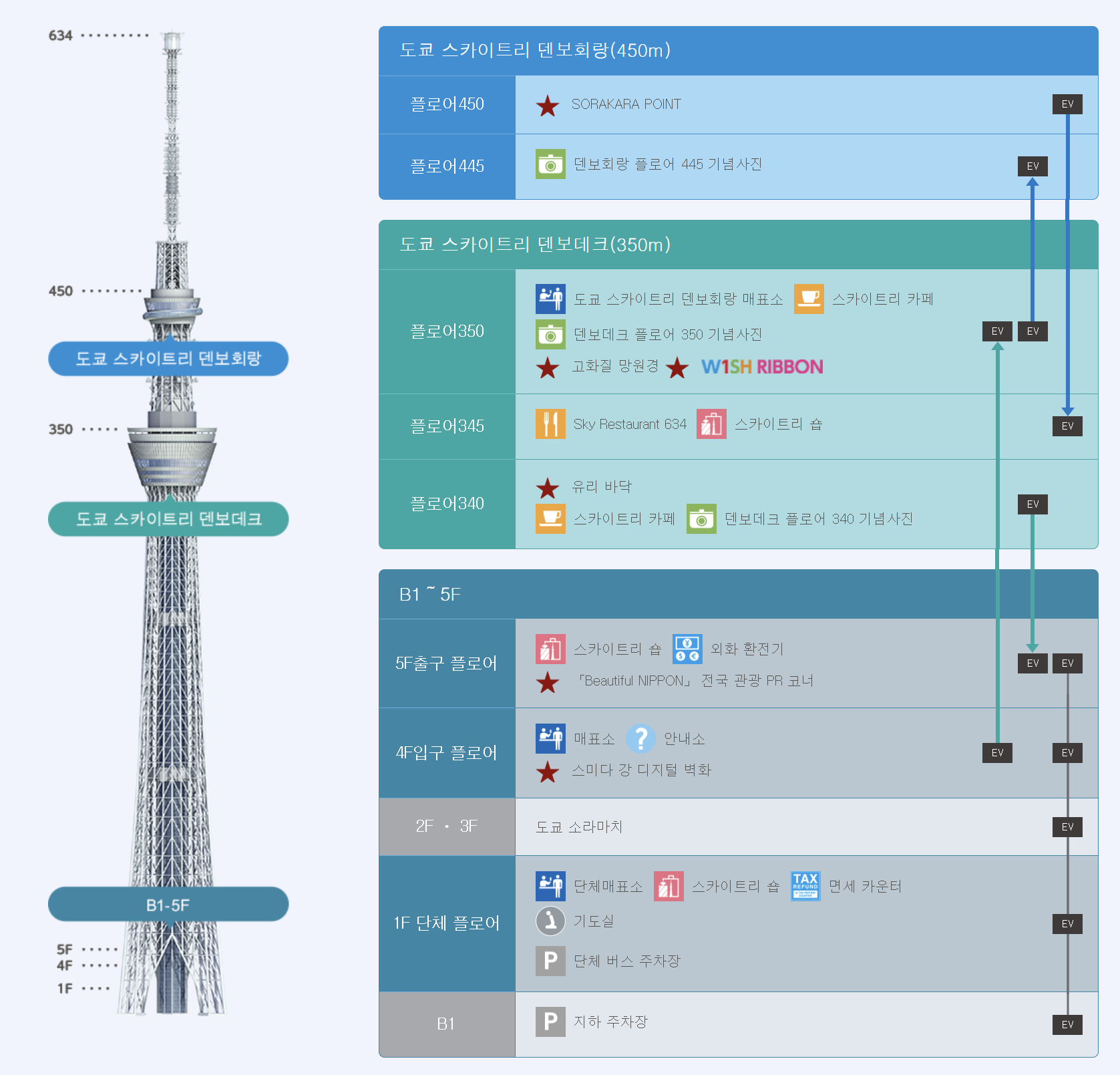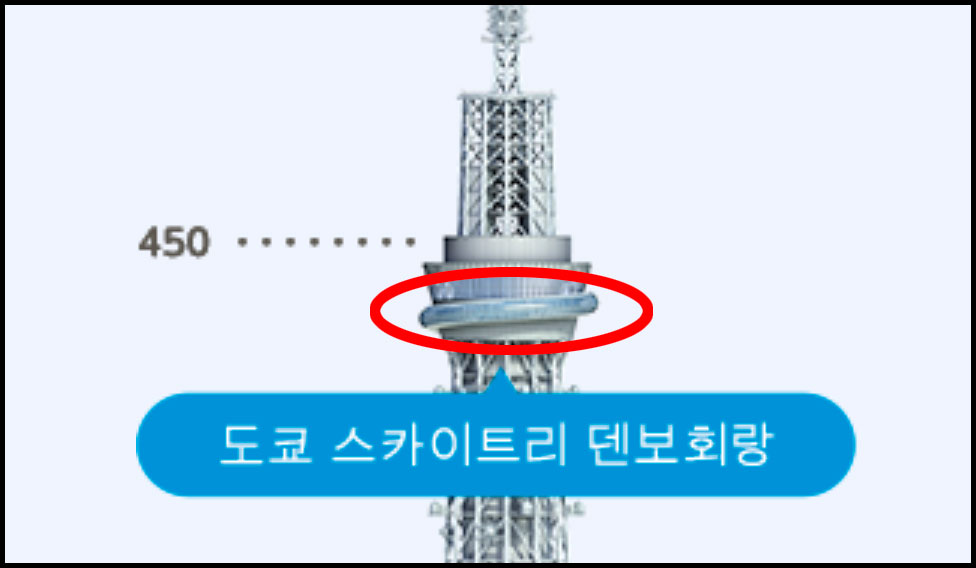 도쿄 스카이트리에는 350m 와 450m 에 전망대가 있습니다.
