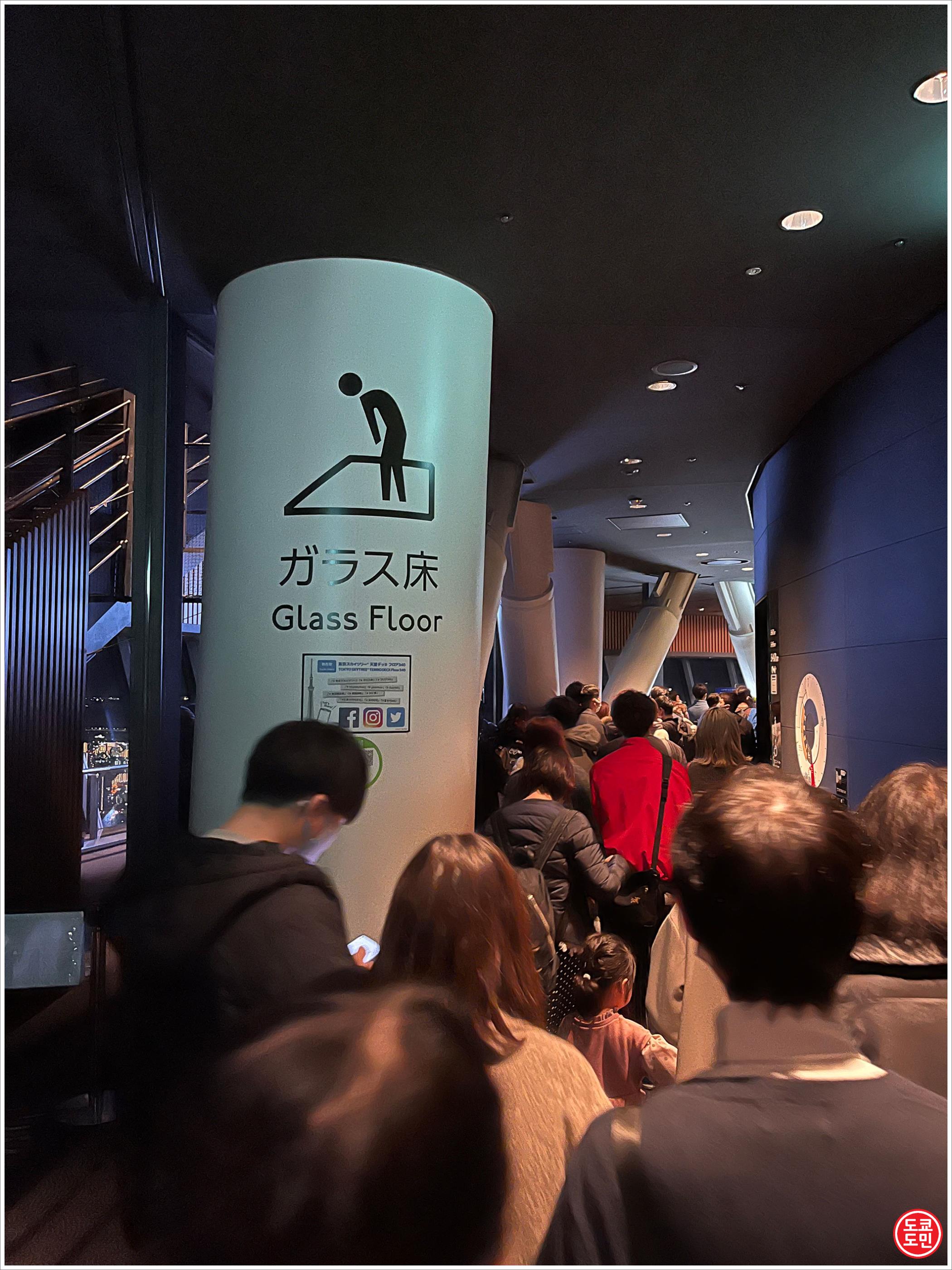 내려갈때에는 스카이트리의 인기 스폿인 "유리바닥"을 필수로 거쳐가게 되어 있더라고요.