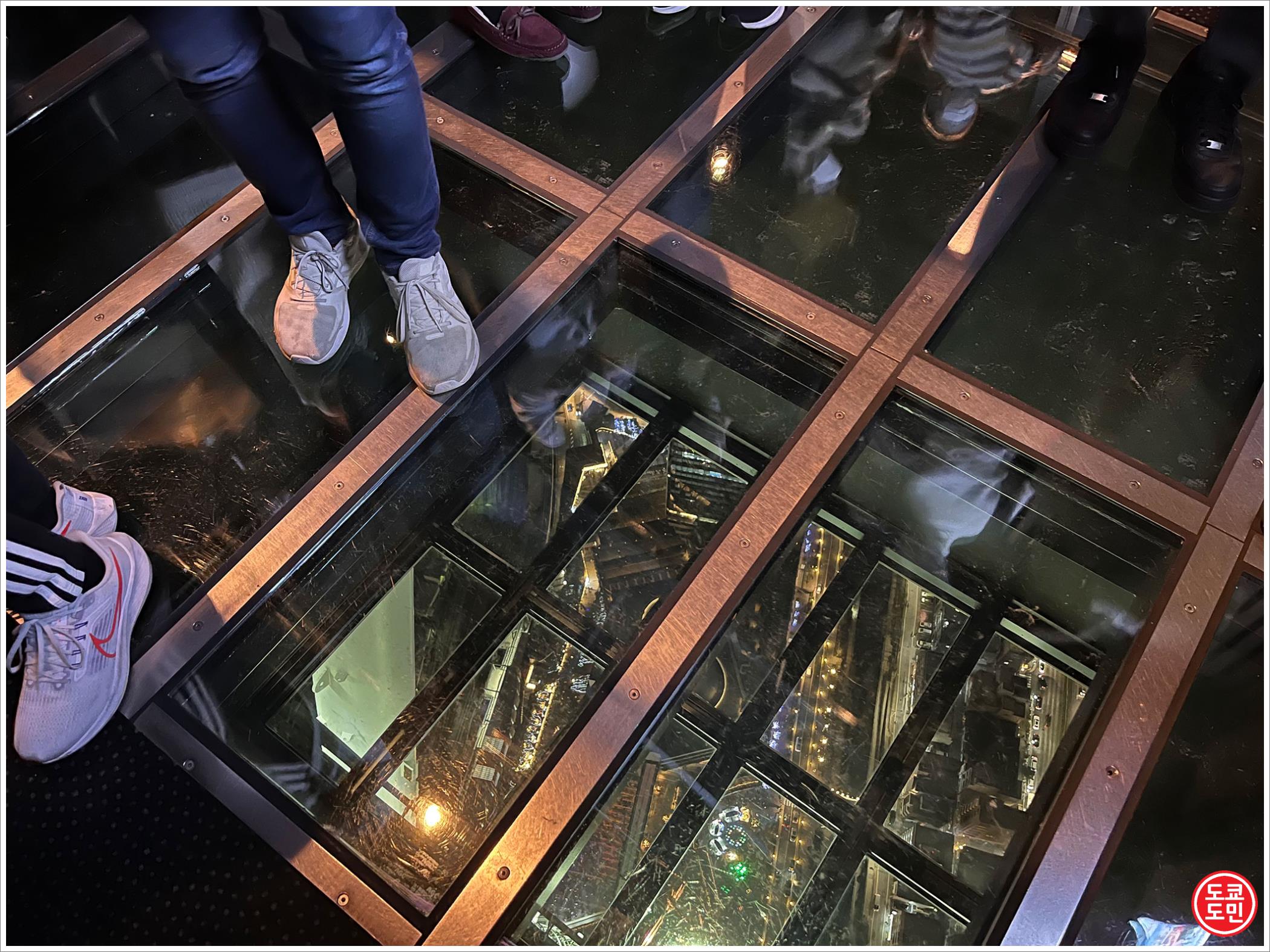 도착하는 곳은 350m 에 있는곳인데, 아래층으로 345m, 340m 의 전망대도 이용할 수 있습니다.