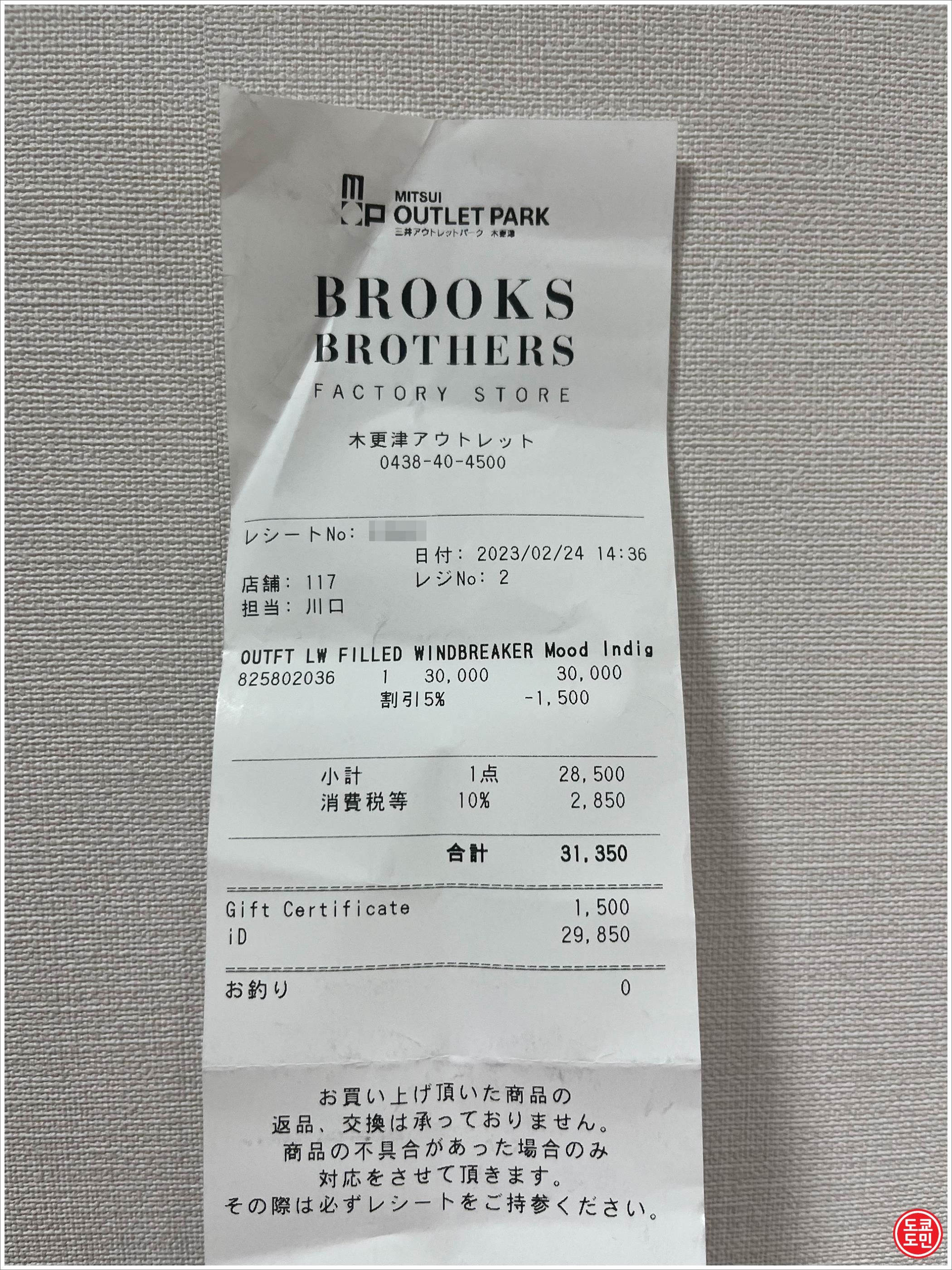 브룩스브라더스의 "써모어(Thermore)" 소재를 사용한 윈드브레이커(바람막이) 자켓을 일본 지바현(치바현)에 있는 키사라즈시 아울렛에서 구입했습니다.