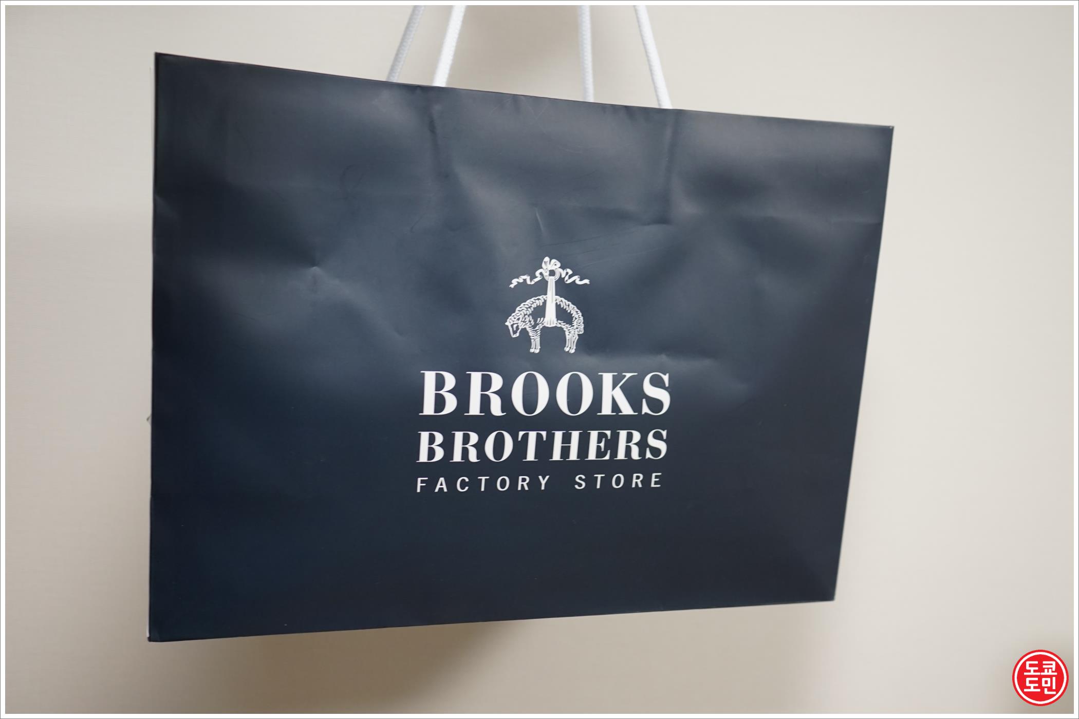 그리고 왼쪽 팔부분에는 빨간색의 브룩스브라더스의 로고가 달려있습니다.