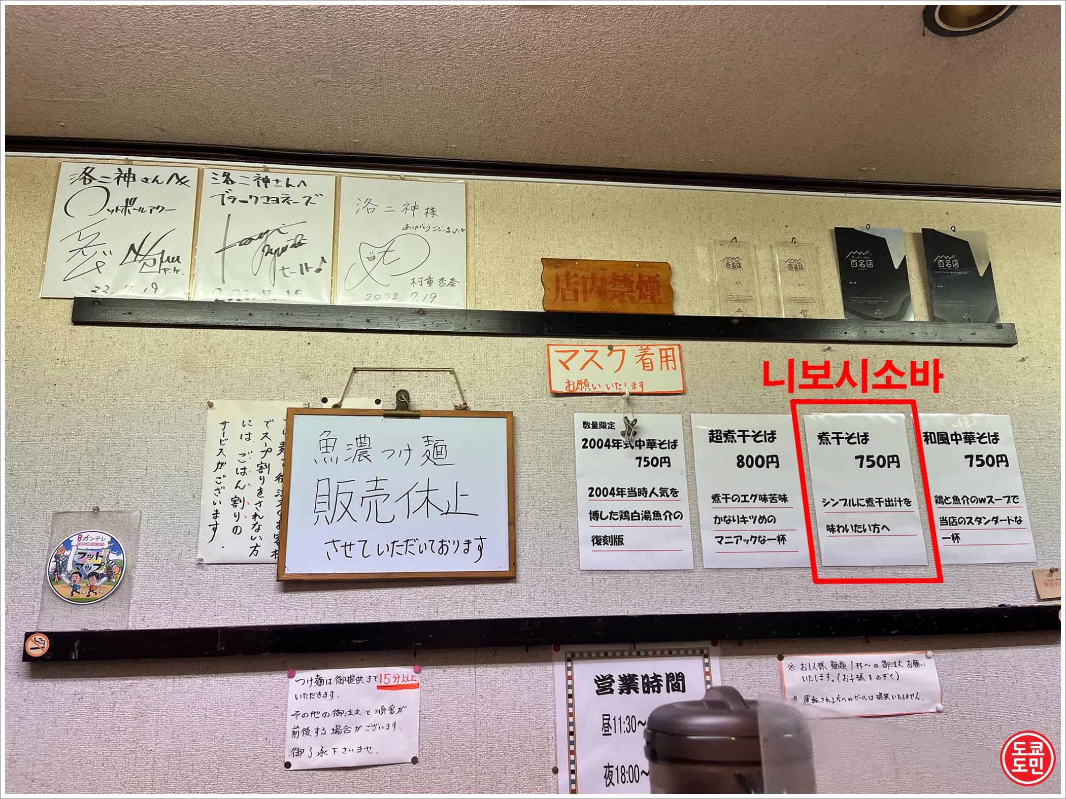 메뉴는 이번에는 멸치라멘인 "니보시소바(煮干そば)" 를 주문했습니다.