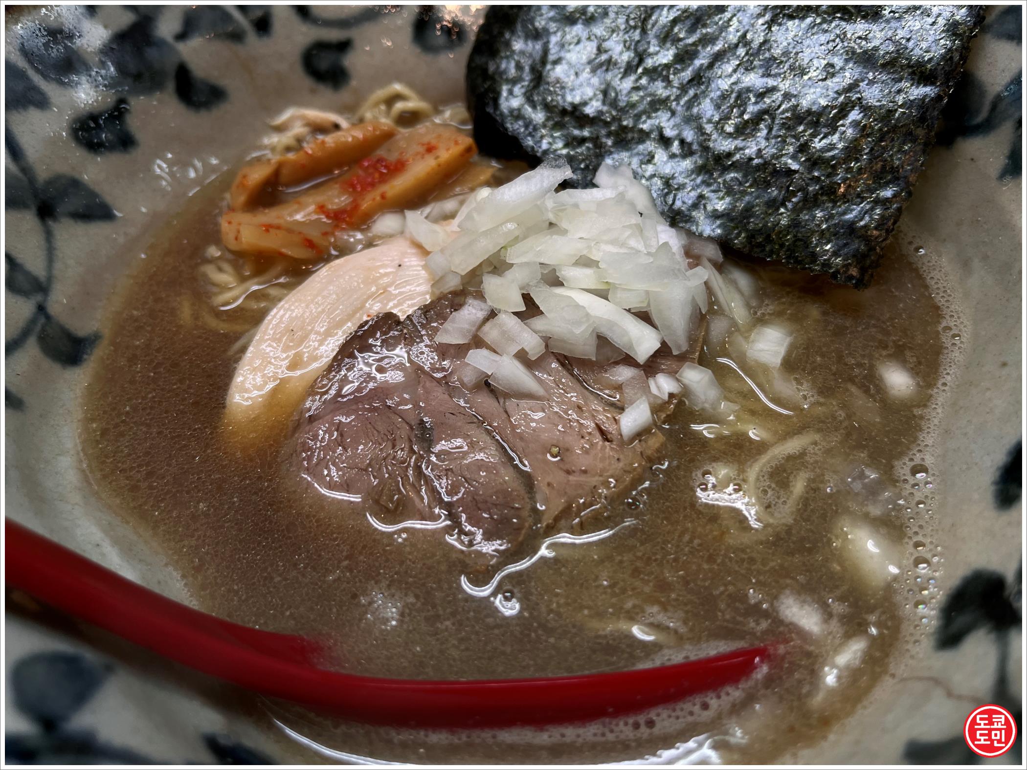 이건 멸치국물이 옅은편인데 이것보다 진하고 걸죽한 국물의 라멘도 있습니다.