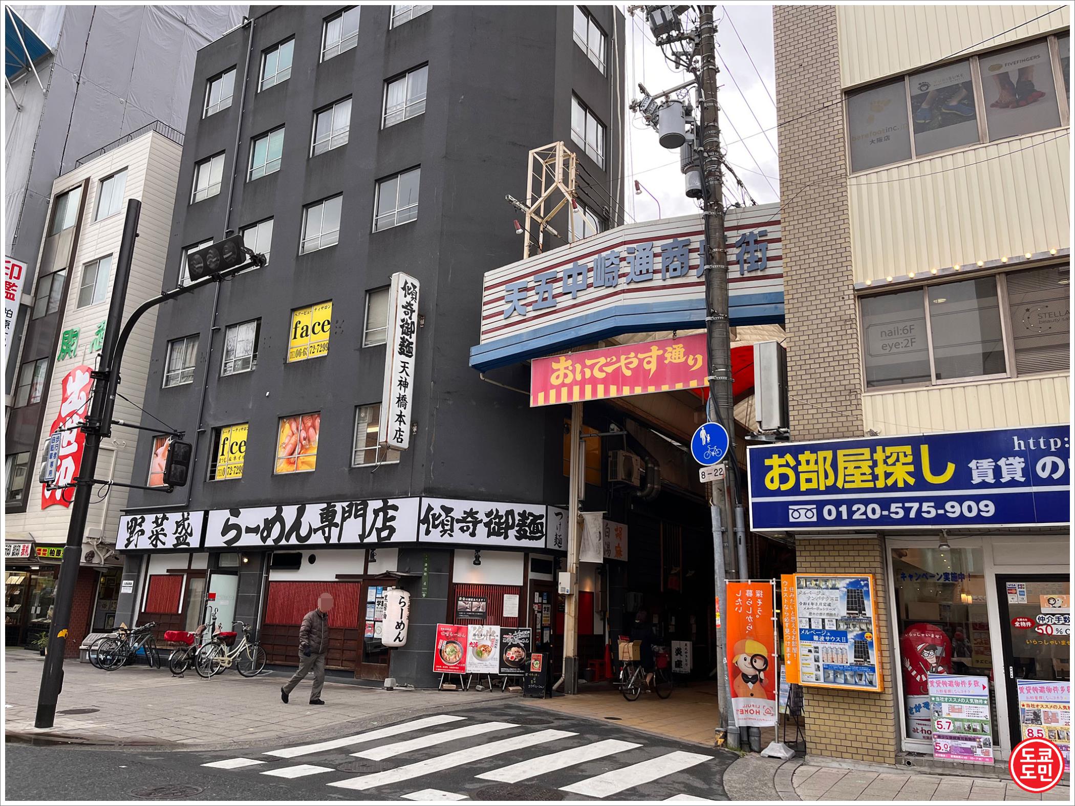 오사카 덴진바시스지로쿠초메역(天神橋筋六丁目駅) 텐고나카자키토오리쇼텐가이(天五中崎通商店街) 라는 상점가의 오이데야스토오리 입구 바로 앞에 있습니다.