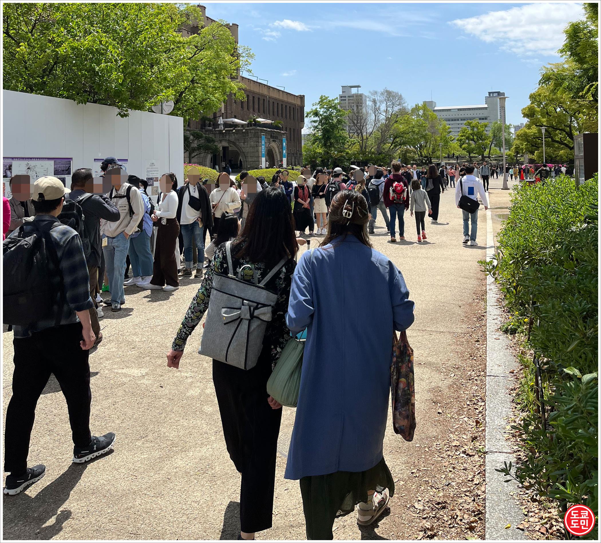 왼쪽에 줄서 있는 사람들이 전부 오사카성 입장권 구입하기 위해 줄서 있는 사람들입니다.