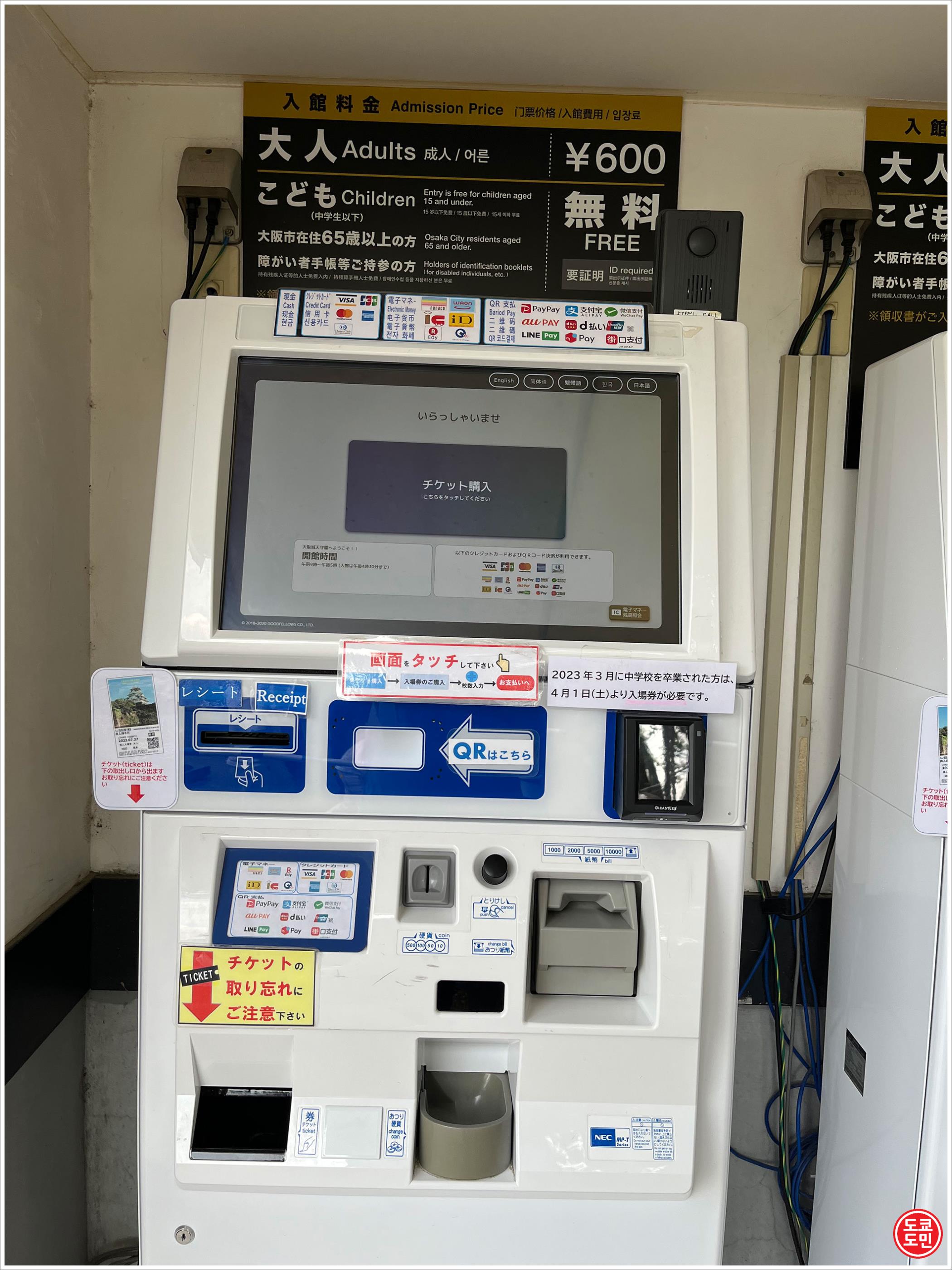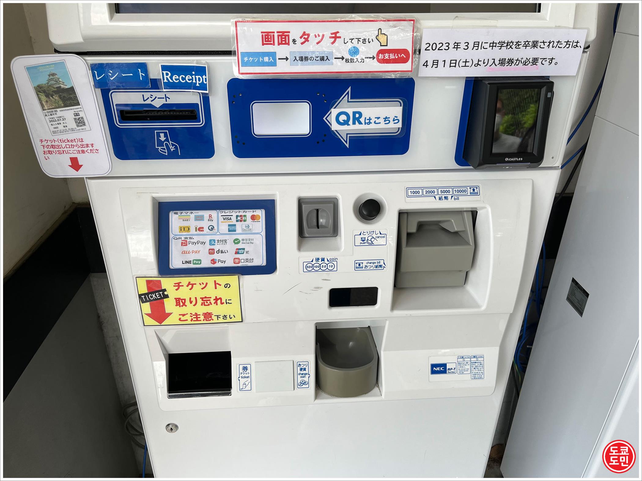 이곳이 천수각 입장권 티켓발매기!