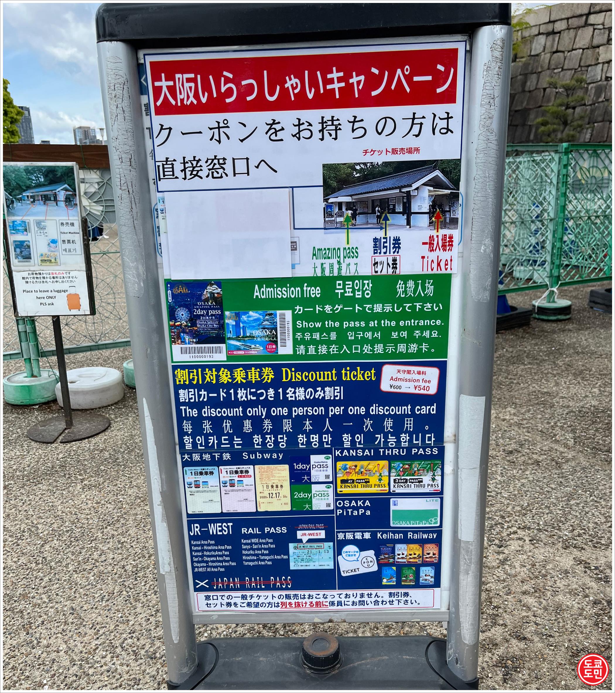 그러니 도착하면 먼저 오사카성 천수각 입장권 구입하고 오사카성 들어가서 구경하고 나와서 오사카성 사진찍으시면서 여행을 즐기시기 바랍니다.