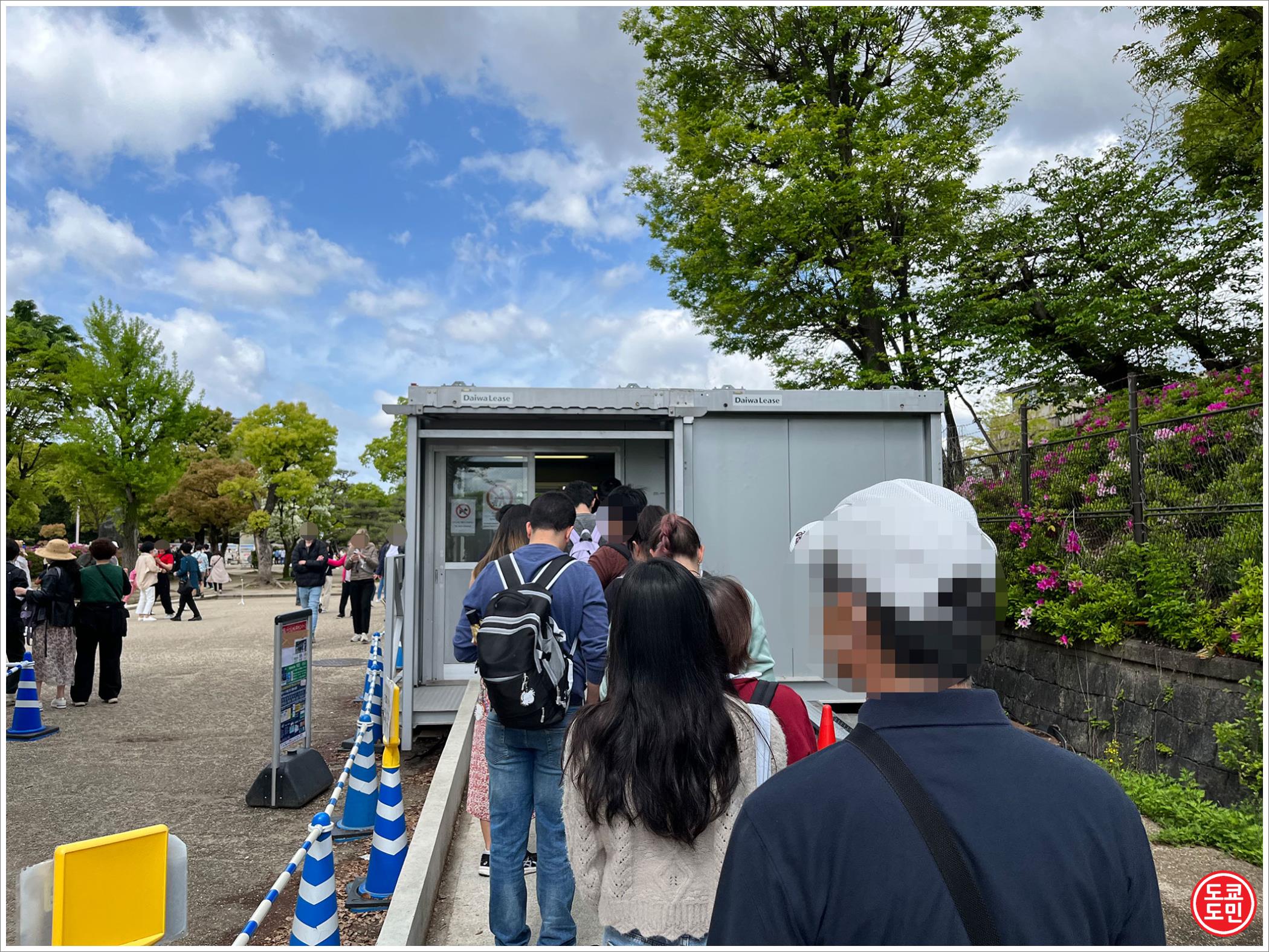 왼쪽에 줄서 있는 사람들이 전부 오사카성 입장권 구입하기 위해 줄서 있는 사람들입니다.