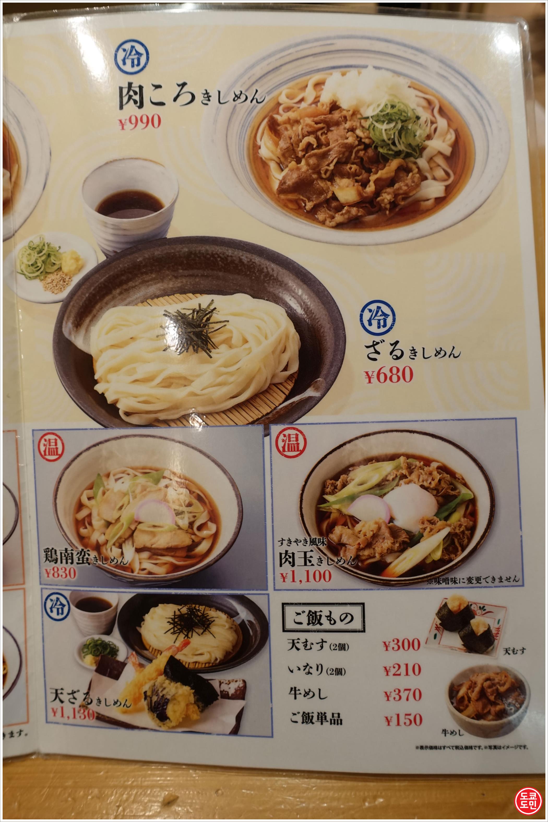 "에키카마 키시멘(驛釜きしめん)"의 메뉴입니다.
