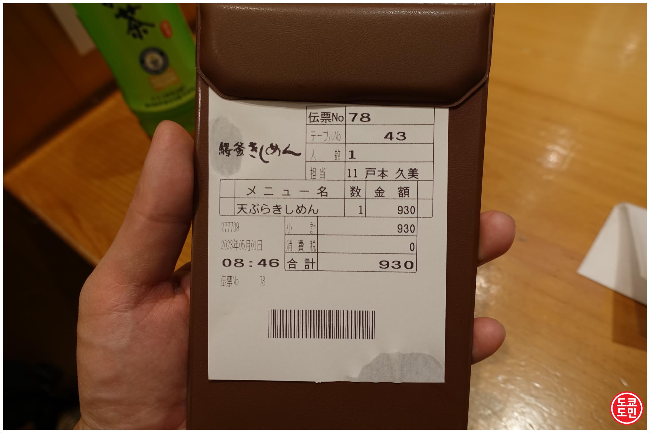 저는 930엔짜리인 텐푸라 키시멘을 주문했습니다.