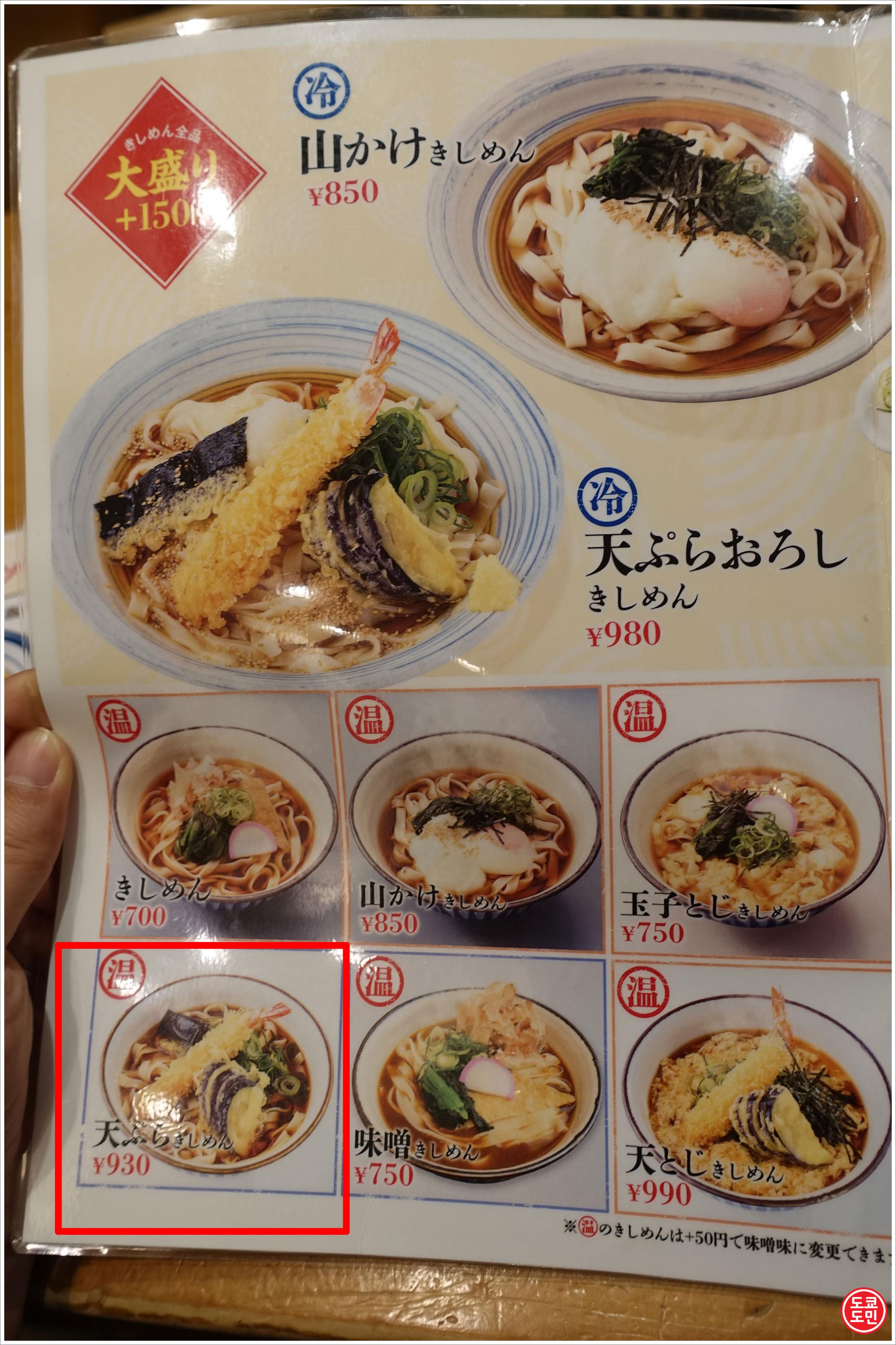 저는 930엔짜리인 텐푸라 키시멘을 주문했습니다.